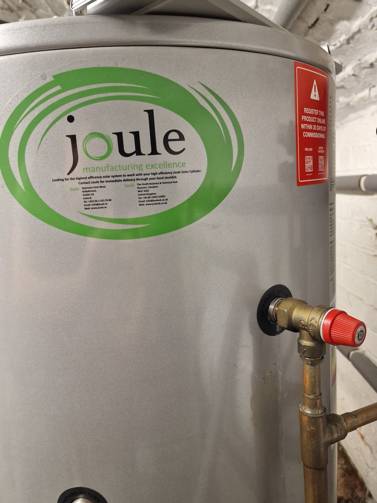 The water tank is a Joule Cyclone indirect 250l.