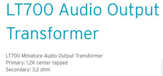 The LT700 (and its sister the LT44) have been around 'for ever', I think well over 50 years (I'm pretty sure I was using them in the 60s - and certainly in the early 70s). They are very small, very cheap and very versatile, and I have used them for countless purposes (as I said, at least 'many dozens' over the decades), many widely divorced from their primary 'intended' purpose. If I remember correctly, the LT700 has a turns (hence voltage) ratio of about 9.5+9.5 : 1 (hence impedance ratio of about 90+90 : 1) whilst the LT44 has a turns/voltage ratio of about 6 : 1+1 (impedance ratio about 36 : 1+1).