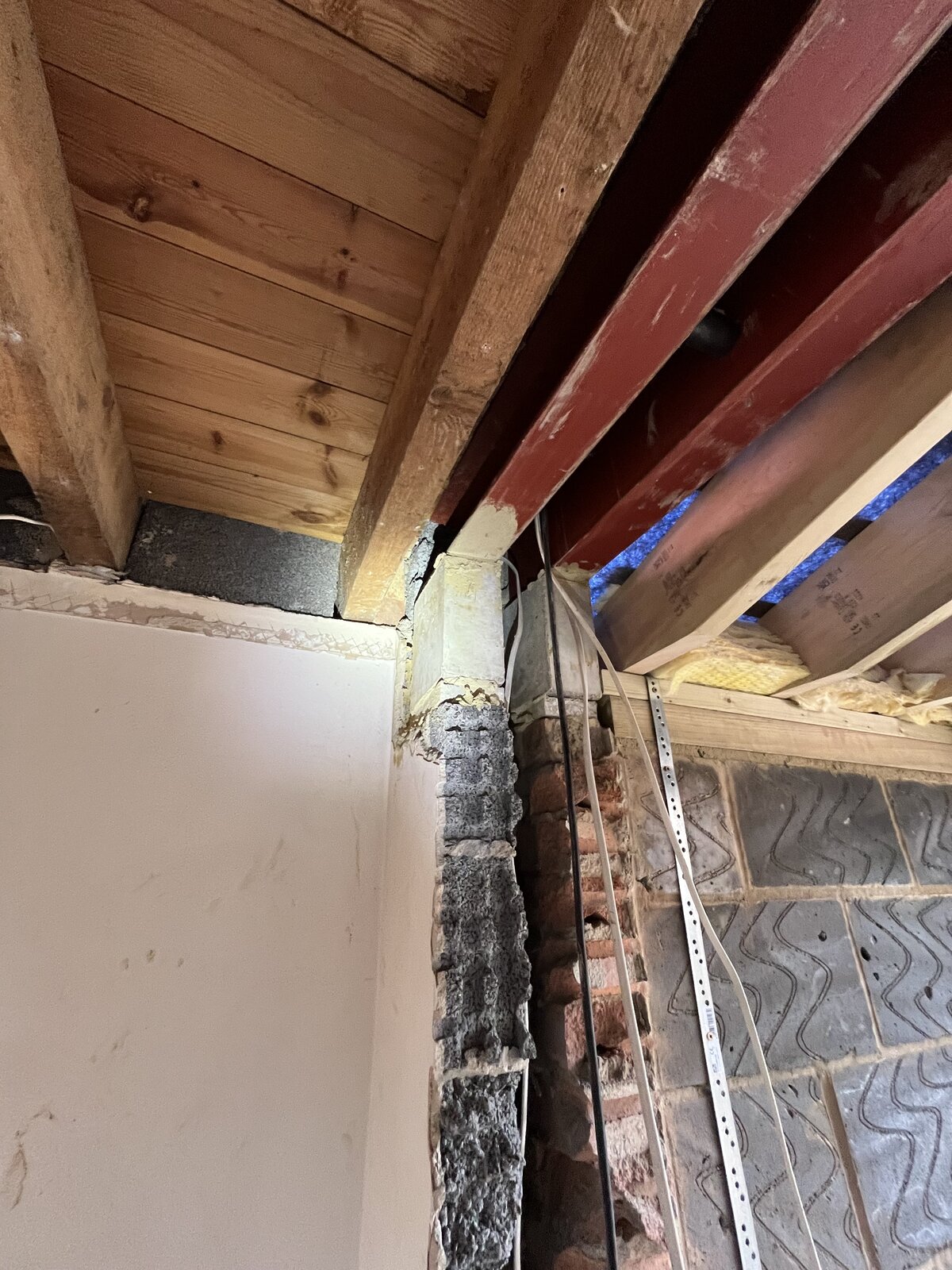 There was a bit of a miscommunication between our builder and the architect for our extension, where the builder has put the RSJs flush with ceiling, leaving the bottom of the gable roof below the top of the steel.