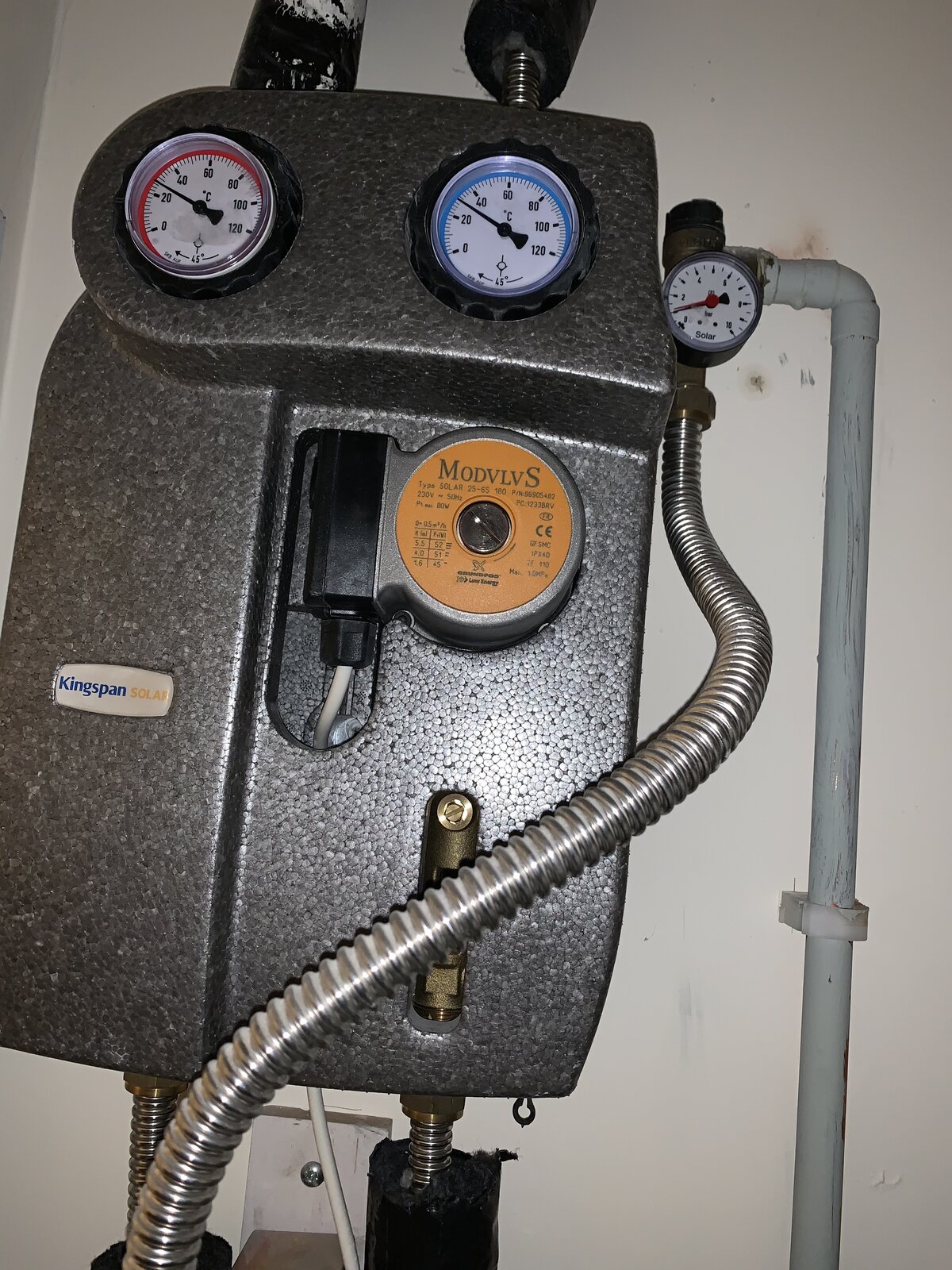 I have a Kingspan thermal solar system, which when operational sounds like it has air bubbles. I did notice low pressure, however this was caused by a faulty valve cap which I have replaced, after I pumped up the pressure vessel.