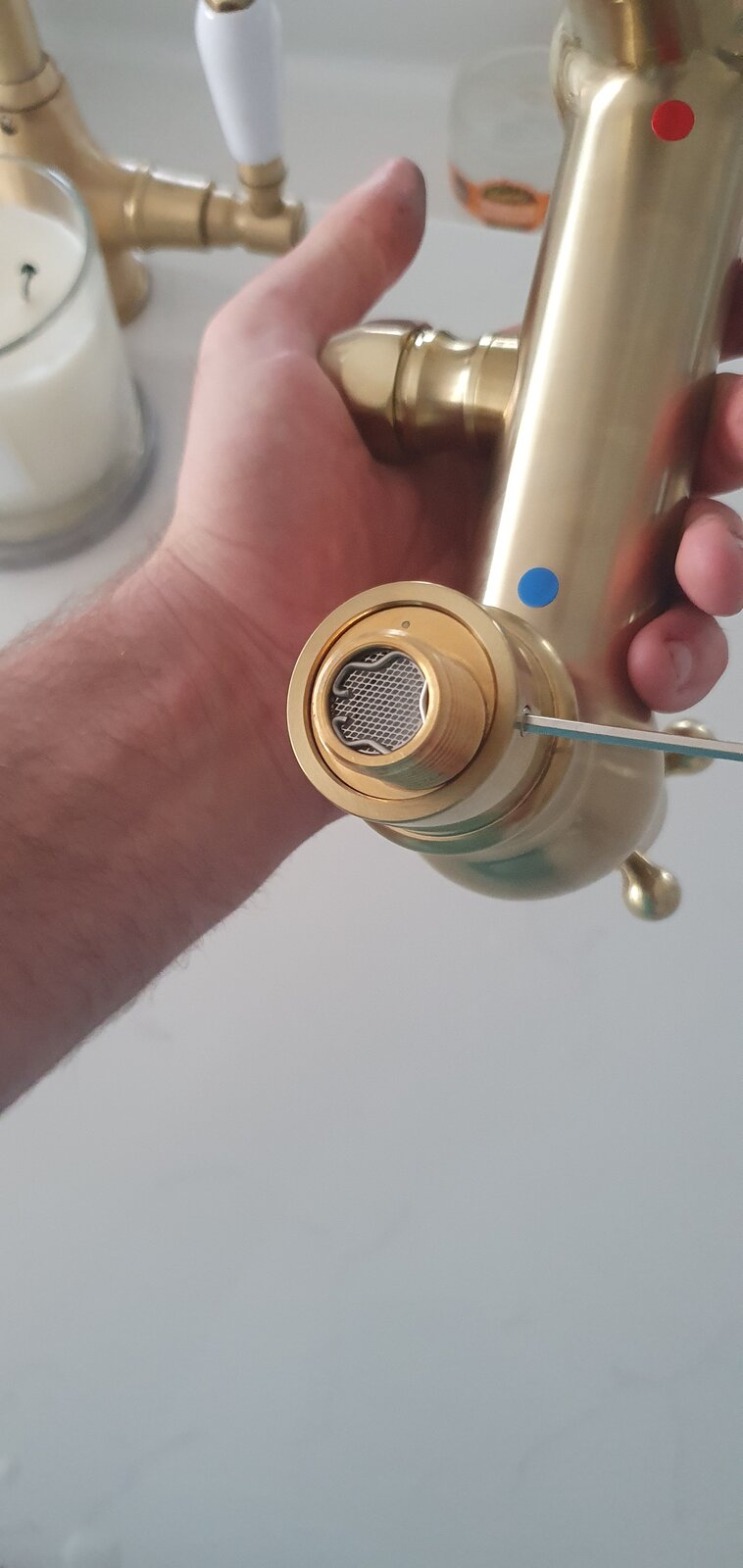 Stupidly I'd expected the a male - male offset connector and i'd sub it out for one of the fast fix brackets over the tiling. But this has a male - brass sleeve held in by a grub screw.