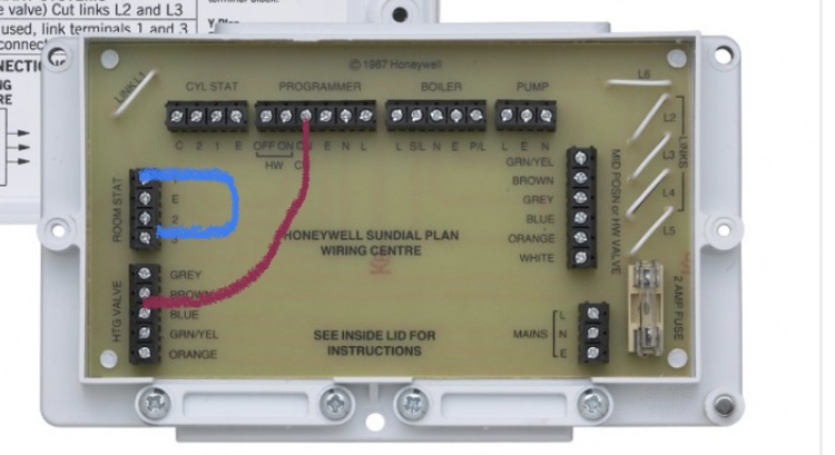 Wired the hub and receiver up fine. I know I now need to bridge the existing thermostat. I have a honeywell 42005748-001 so I have traced back disconnected the 2 wires going to the thermostat. I have the looped a wire in the slots the 2 thermostat wires were in. Then I have linked ‘heating valve brown’ to ‘programmer CH on’.