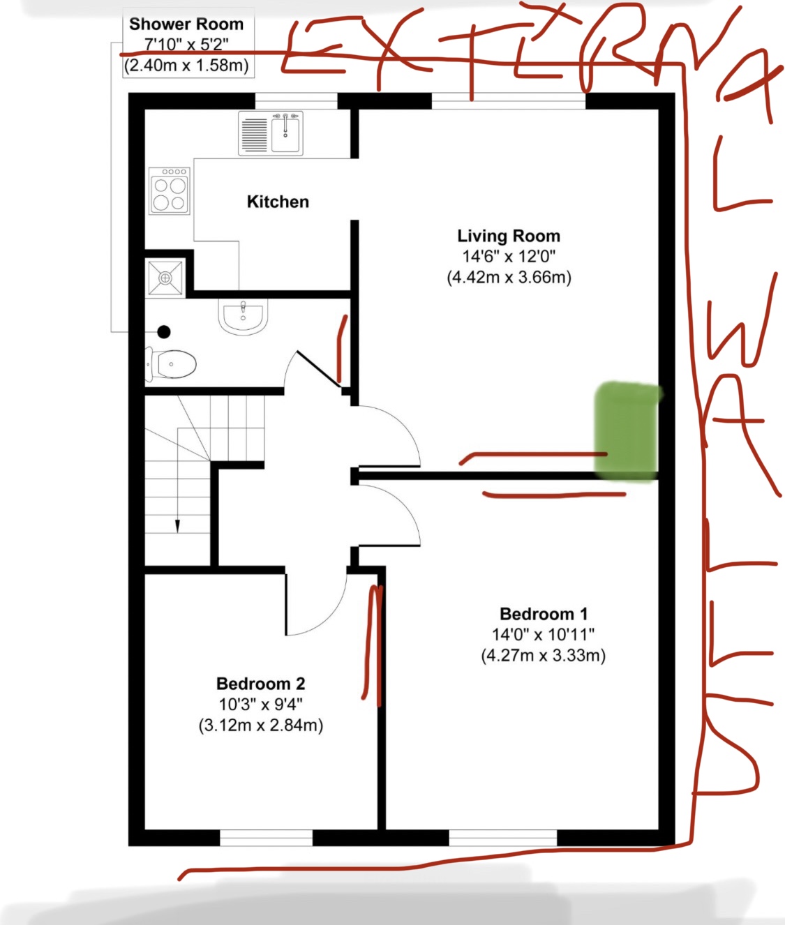 It’s a first floor flat with cavity walls and no radiator in the landing.
