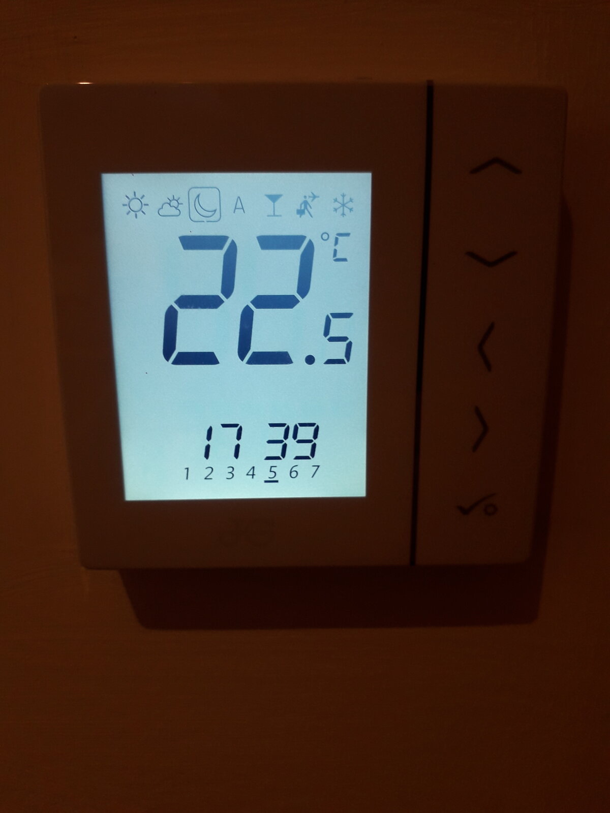 I moved into my new house recently to find the downstairs underfloor heating temp (gas boiler, not electric) is controlled by four “nightmare” thermostats in lounge, kitchen, hall and utility room. (See photo). I've had several attempts to program them, but can't get my head around setting temperatures for the SEVEN different time zones plus all the other variables I need to consider. They are just far too sophisticated for my requirements.