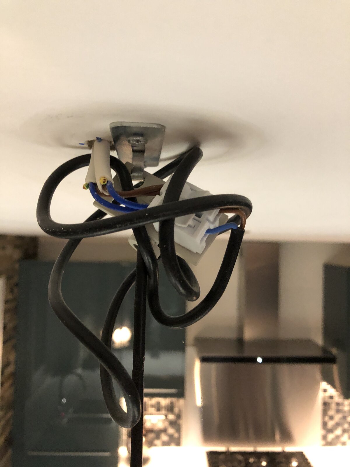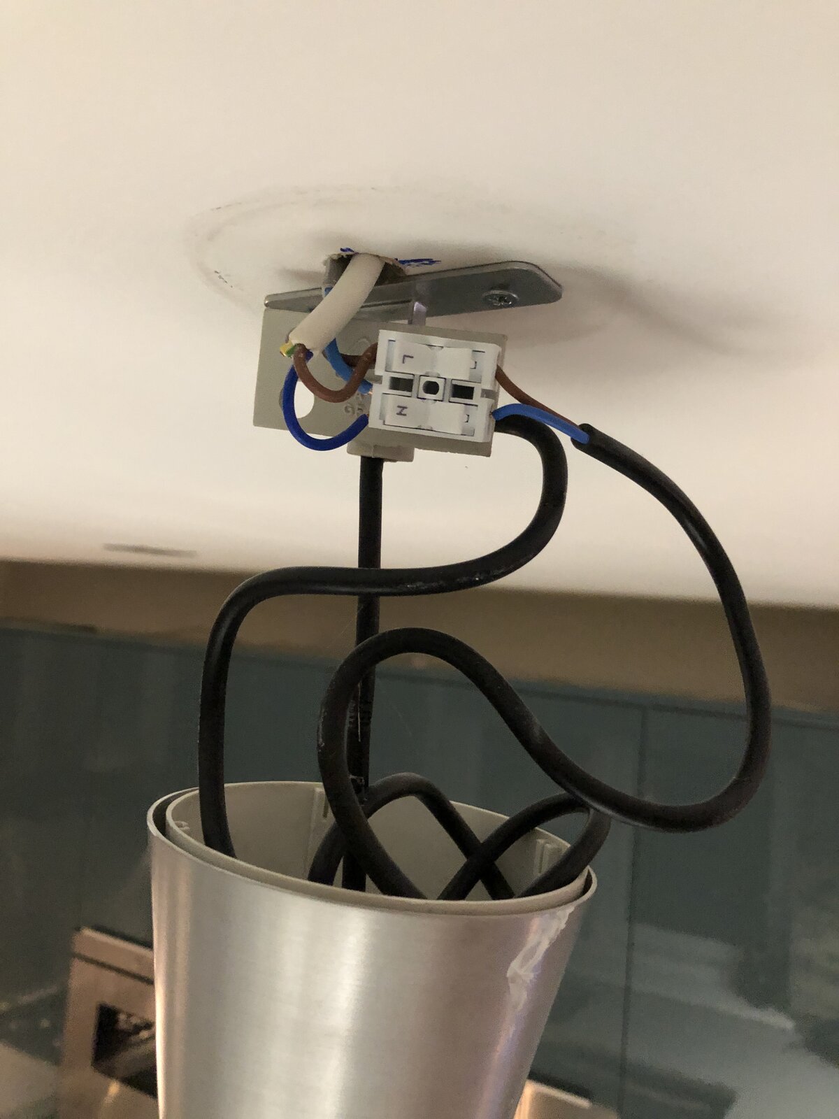 We are changing this to a new light which is a single pendant in the position of the central existing pendant.