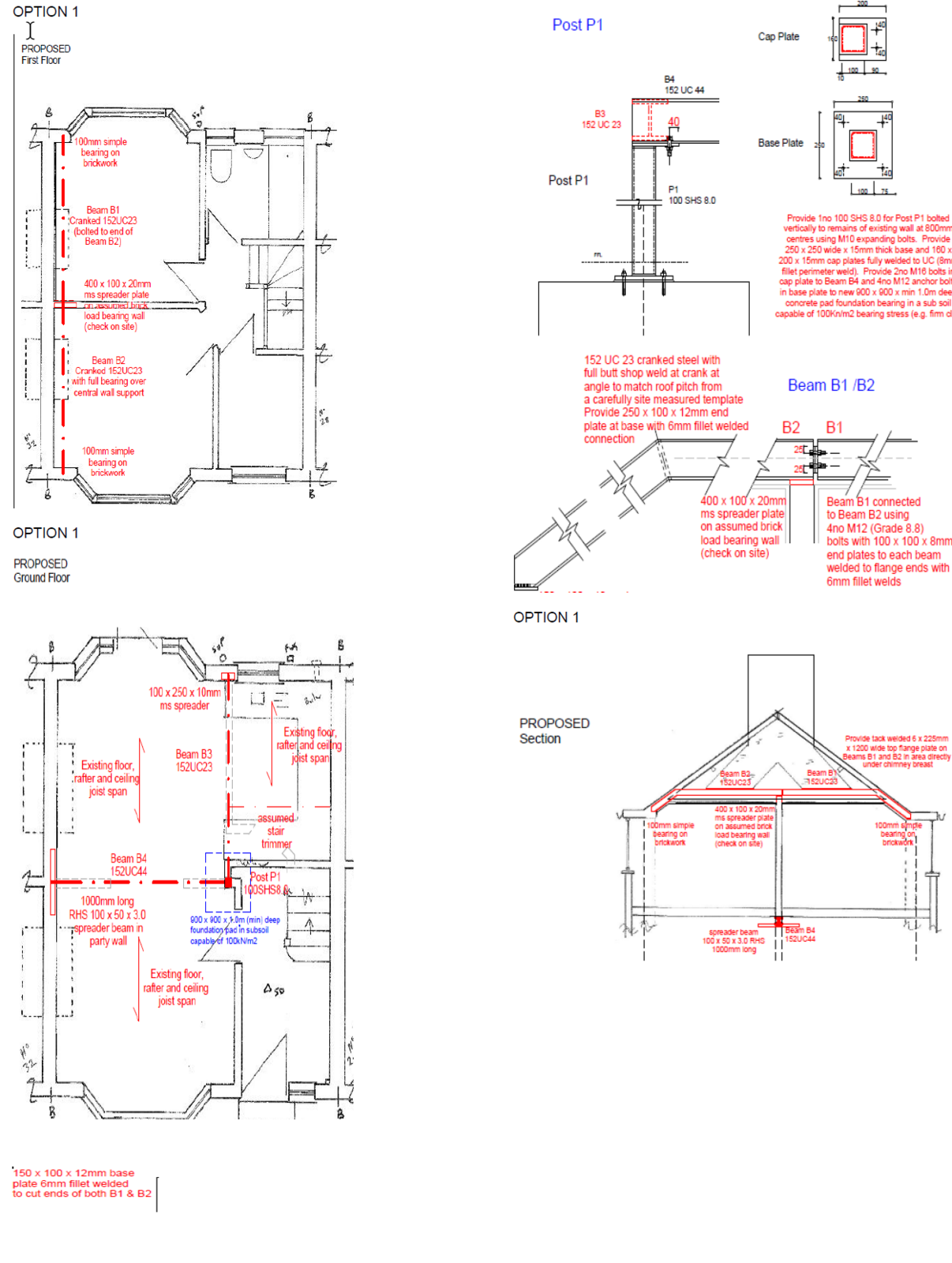 (Note I am also putting a cranked steel alongside the party wall in the first floor to support the chimney stack in the loft. Also you can ignore beam B3 in the plans since that was confirmed a non load bearing wall)
