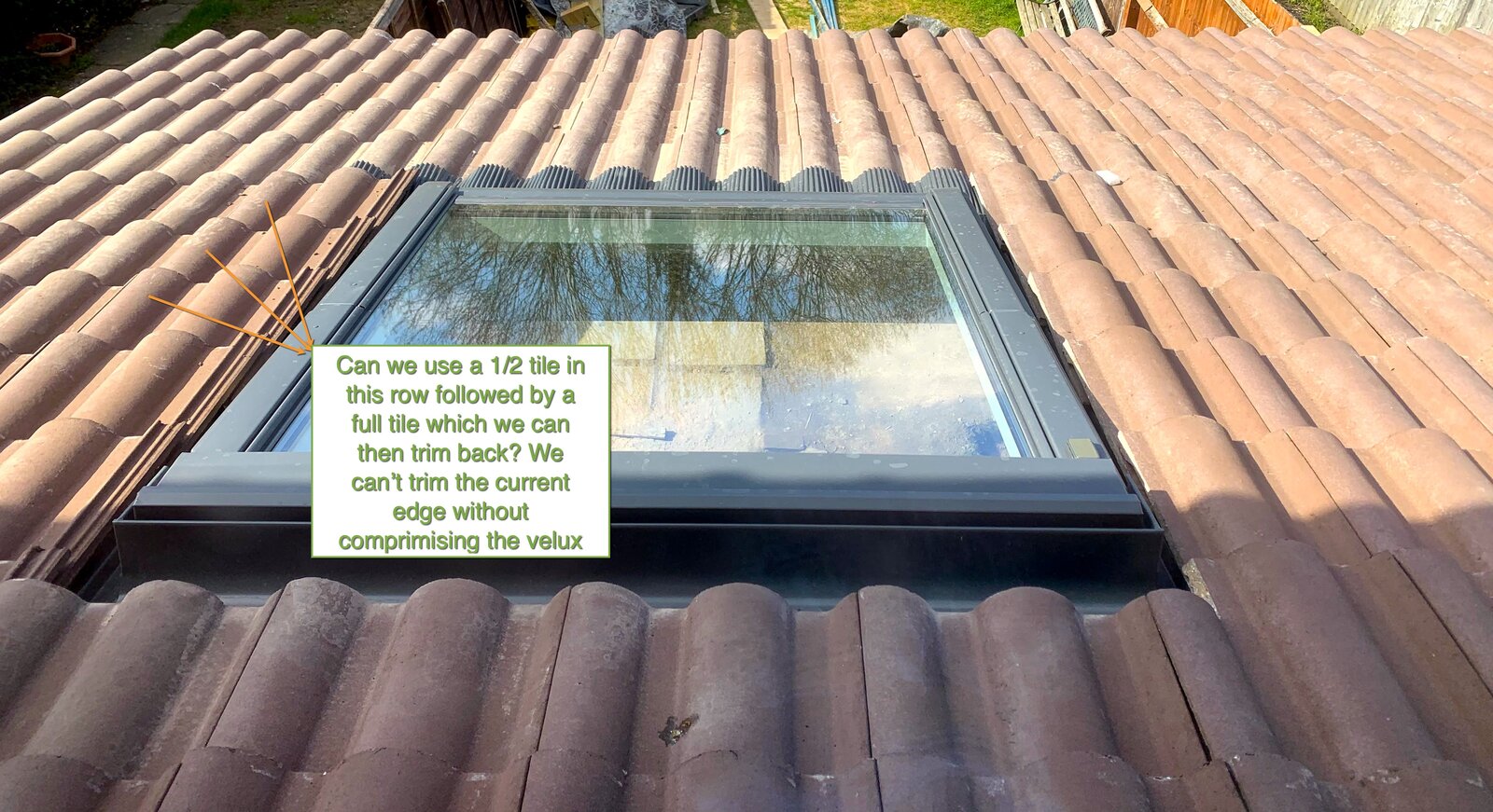 I was hoping to get some roofing advice on an issue with the the way the tiles have been placed around a Velux. The tiles on the left of the velux are sitting quite high as compared to the right. The window has been in-place for about 18 months and last week with the recent rain, there is a slight damp patch just below where this line of raised tiles are located. I have been in contact with Velux who have advised the tiles need to be 'lowered'. Question before I call back my contractor is do all the tiles on the roof need to be re-done? I'm just trying to gauge the effort. Thanks