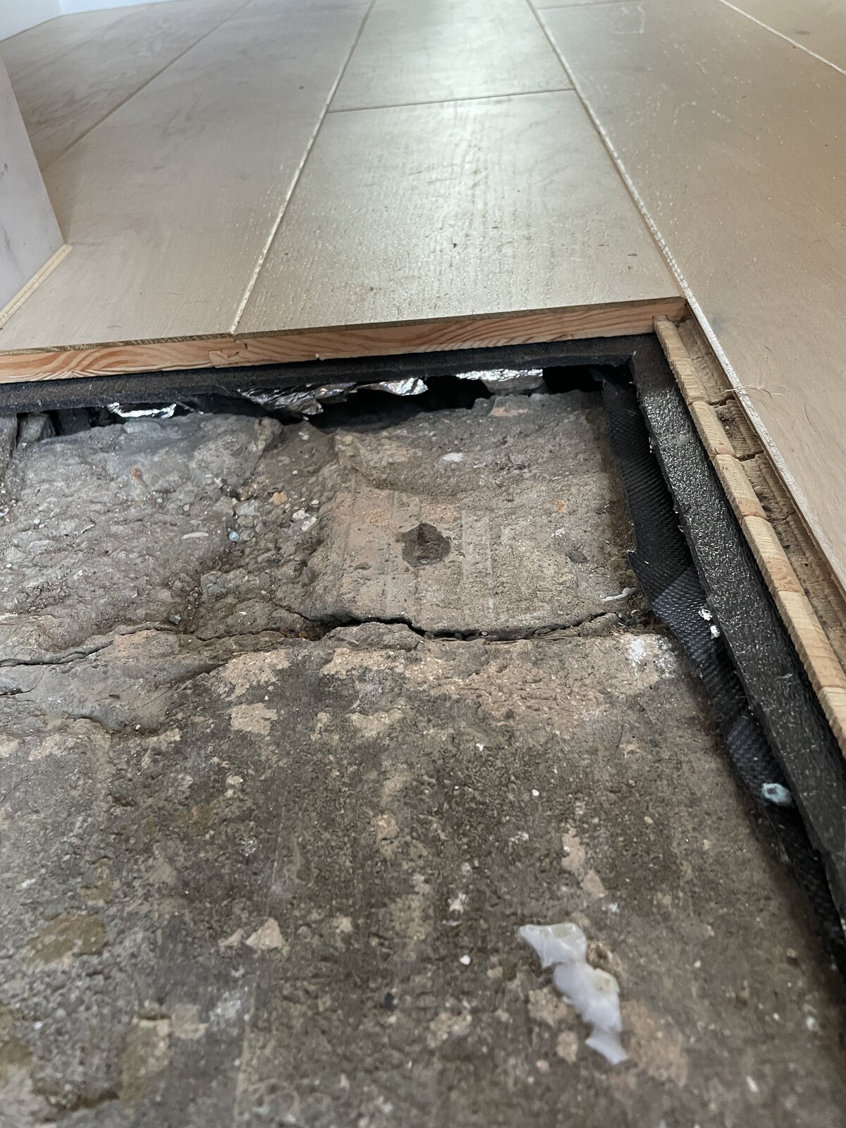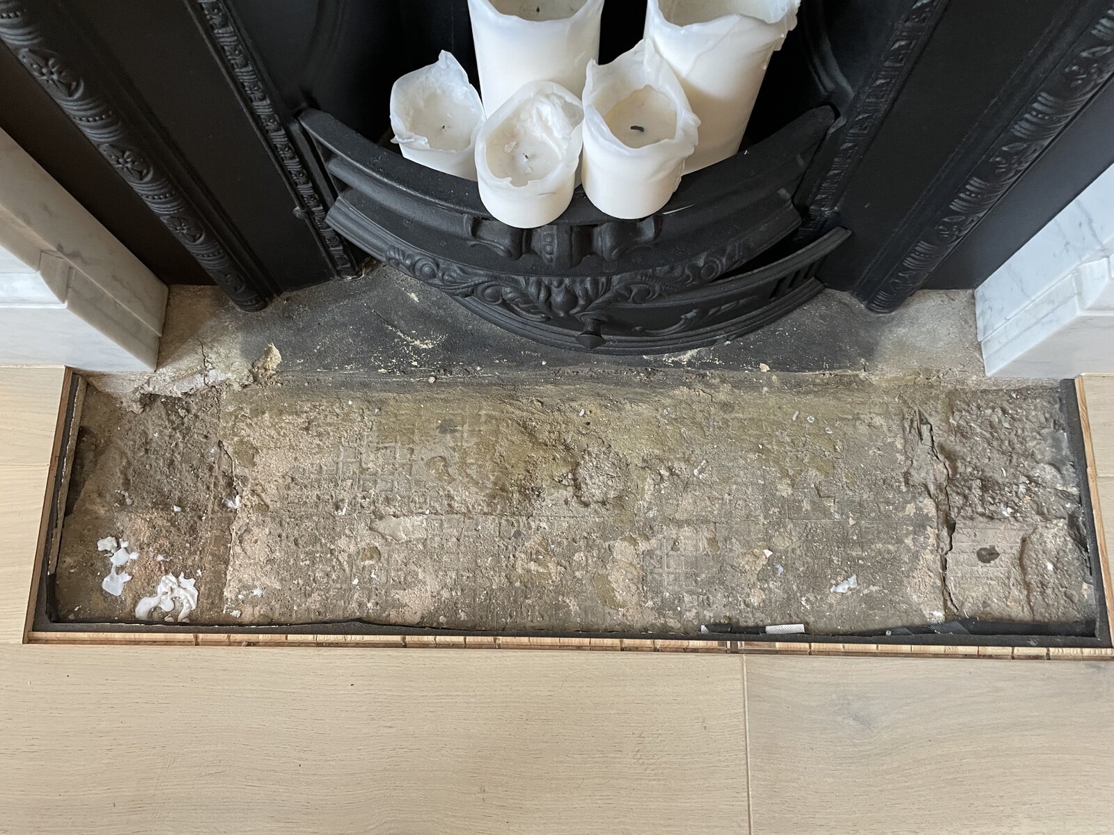 I also have engineered floorboards butting up to the hearth which I plan to have as a flush transition to the tiles with a brass L trim to separate them.