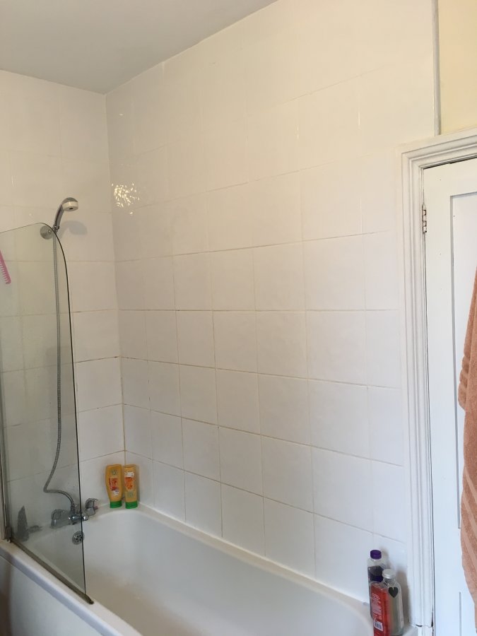 With the ceilings being fairly high and the bathroom door at the end of the bath, I'd like the tiles to stop just before the height of the door rather than going all the way to the ceiling. This would mean from the side of the bath the tiles would go roughly 152cm up to the top of the door.