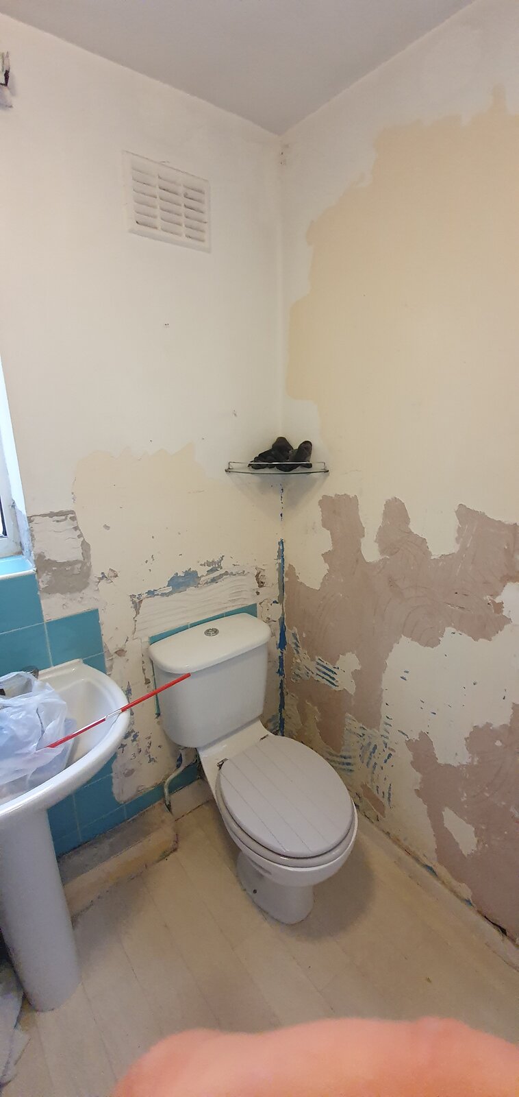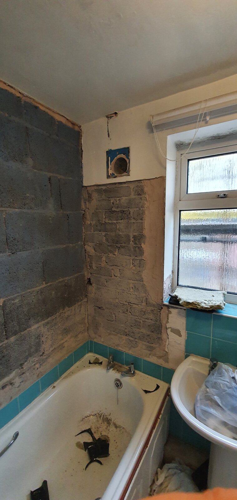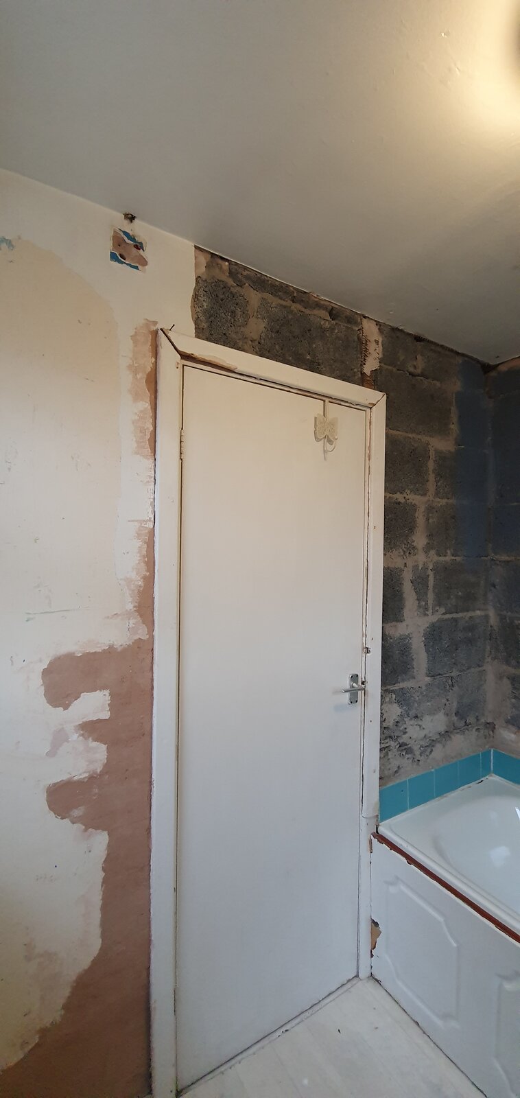 I am in the middle of doing the bathroom up, I had to knock back to brick as the plaster came of along with all the tiles....now I'm not going to plaster I'm going to use boards.