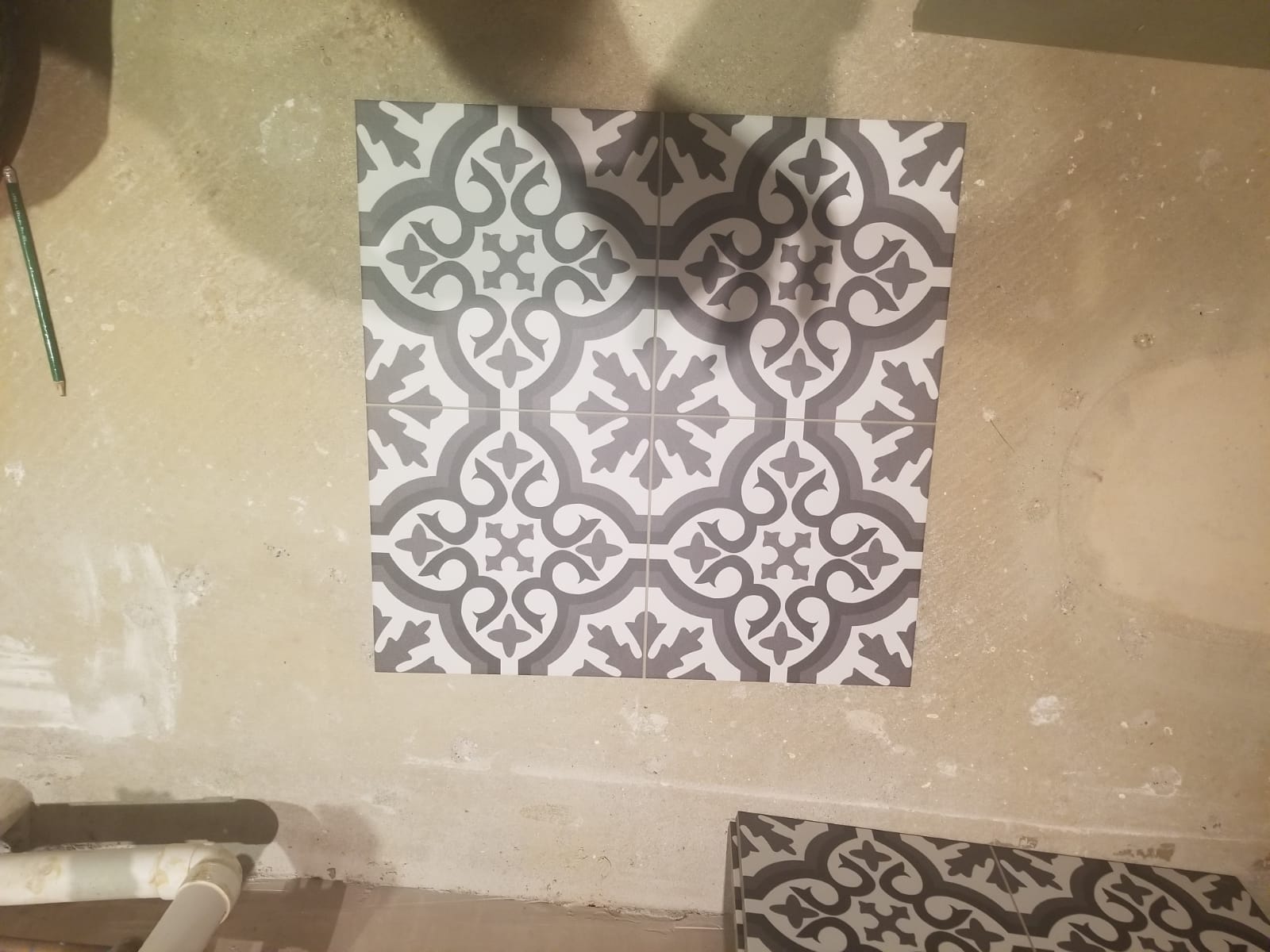 I'm tiling onto concrete floor downstairs toilet. Room is small (using large tiles 45x45cm) and so 8 tiles cover the whole floor. Where I have taken up the carpet and pulled up the carpet gripper there are some holes in the concrete (mainly around the edge but some around the original toilet) where the nails have come up. However when I place the large tiles on the floor they lie flat. Do I need to fill in the holes or will putting adhesive just do that anyway? Also, what primer should I use?
