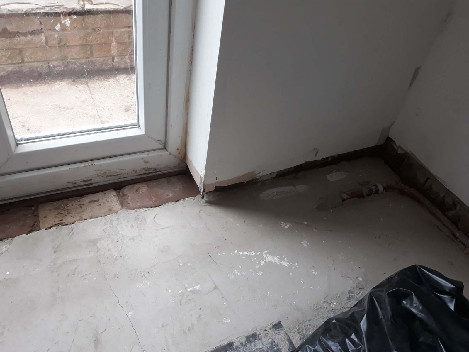 I posted a short while ago about patio threshold damp which was tracking through some screed which had been laid to cover sunk gas pipe and level up for new tiling over old.