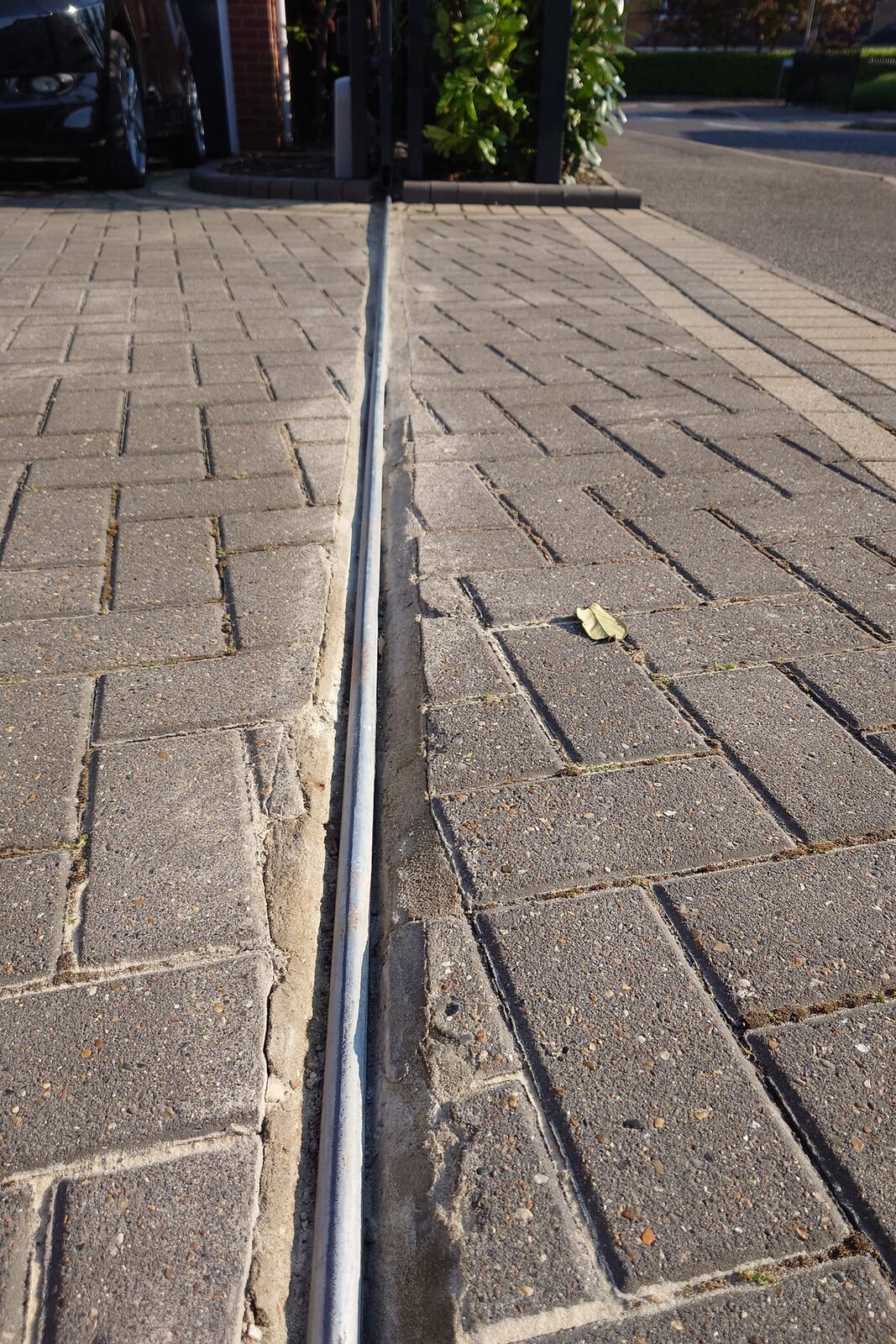looking for ideas on trying to tidy this gate channel/track, i cant make the concrete level as the gates wheel runs along it. i've clean with a brush on the stones, just looks shoddy but driveway is on a slope so the track had to bed in that side for a level gate. was thinking maybe grey floor paint would blend it in a bit more, its not even when its open you can see it when its closed, for closed i could get some brushes and put along the bottom to hide most of it, but when the gate is open it looks really bad