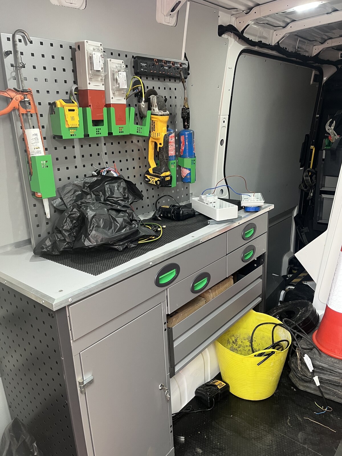 The only thing that slightly disappoints me about this picture is the fourth green container half way up the rack.Now lighting up everyone’s Xmas. Just knocking up some lighting control units to fix to my favorite lamp posts. I am like Santa’s helper in my mobile workshop.