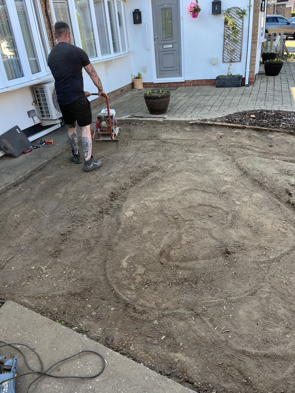 8 tonn skip coming next week so we can fill the skip with the old drive block paving plus the spoil from the digging today. we had previously dug 1 to 2 tons out after the trees were uprooted