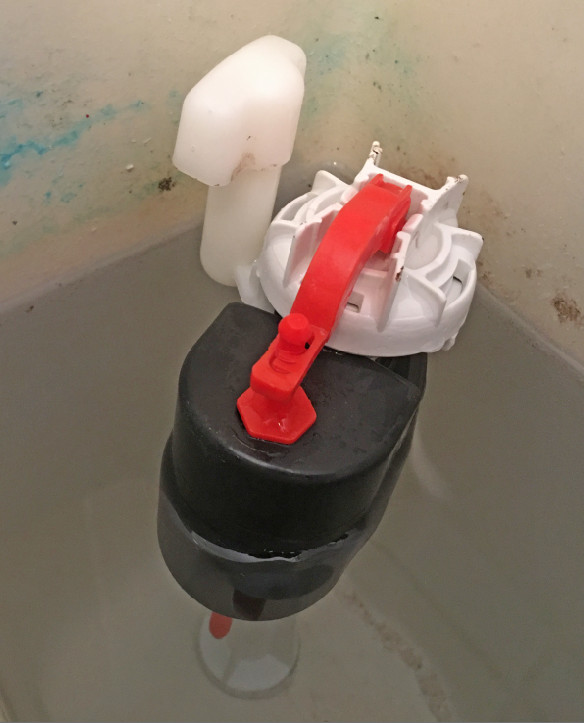 You would think the red sea saw would move dependant on water level by the float & push the black seal to make contact & shut the water off but this doesnt happen,reason being where the red part connects to the white part nothing moves up or down, its just a pivot point.