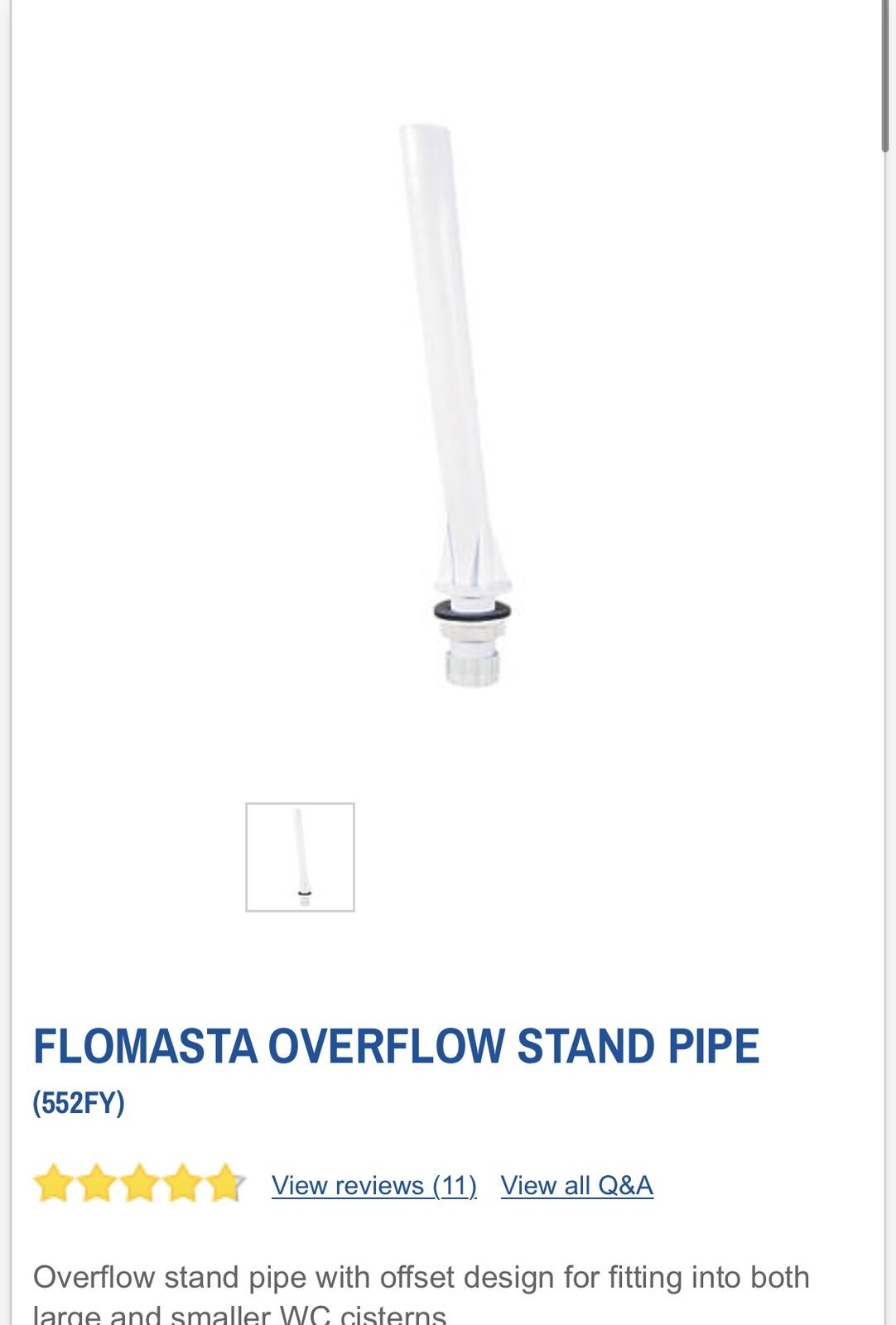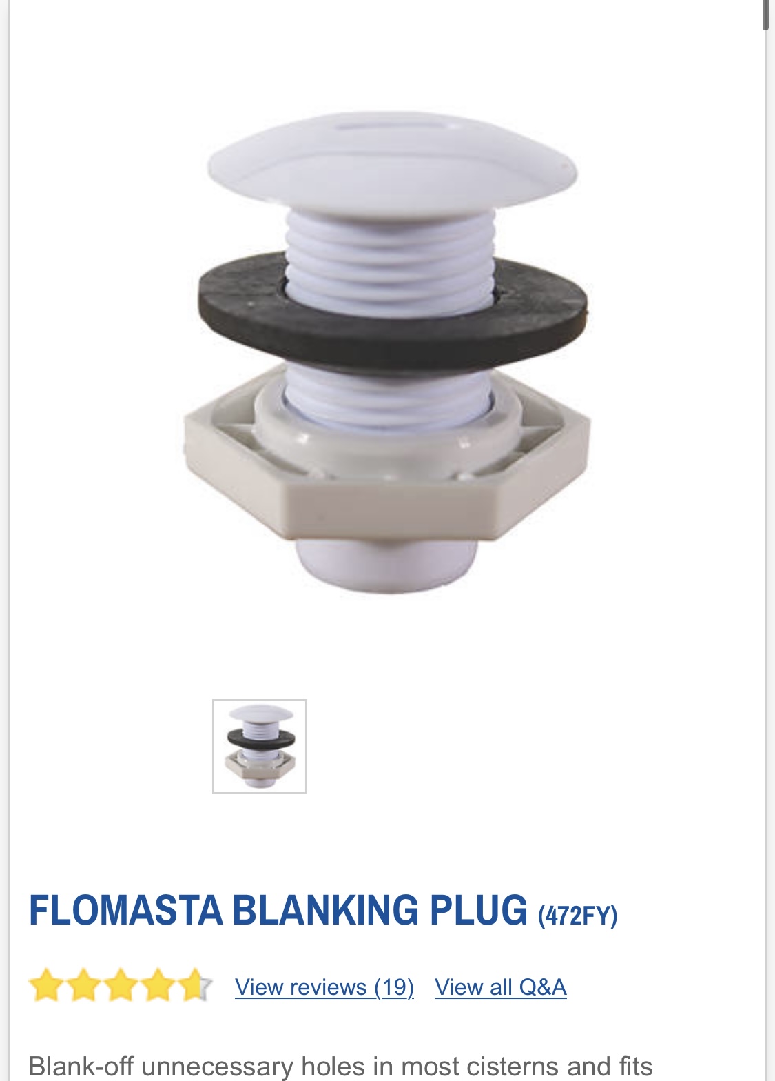 I googled and at first thought that it was a simple cistern blanking plug that was needed but then also read about standpipe overflow. On looking in the cistern it had an overflow pipe which I assumed went to the toilet bowl but when I tipped 2 litres of water down to test it the result was 2 lites of water on the bathroom floor as it came flooding out the plastic fitting which the pipe is attached to!