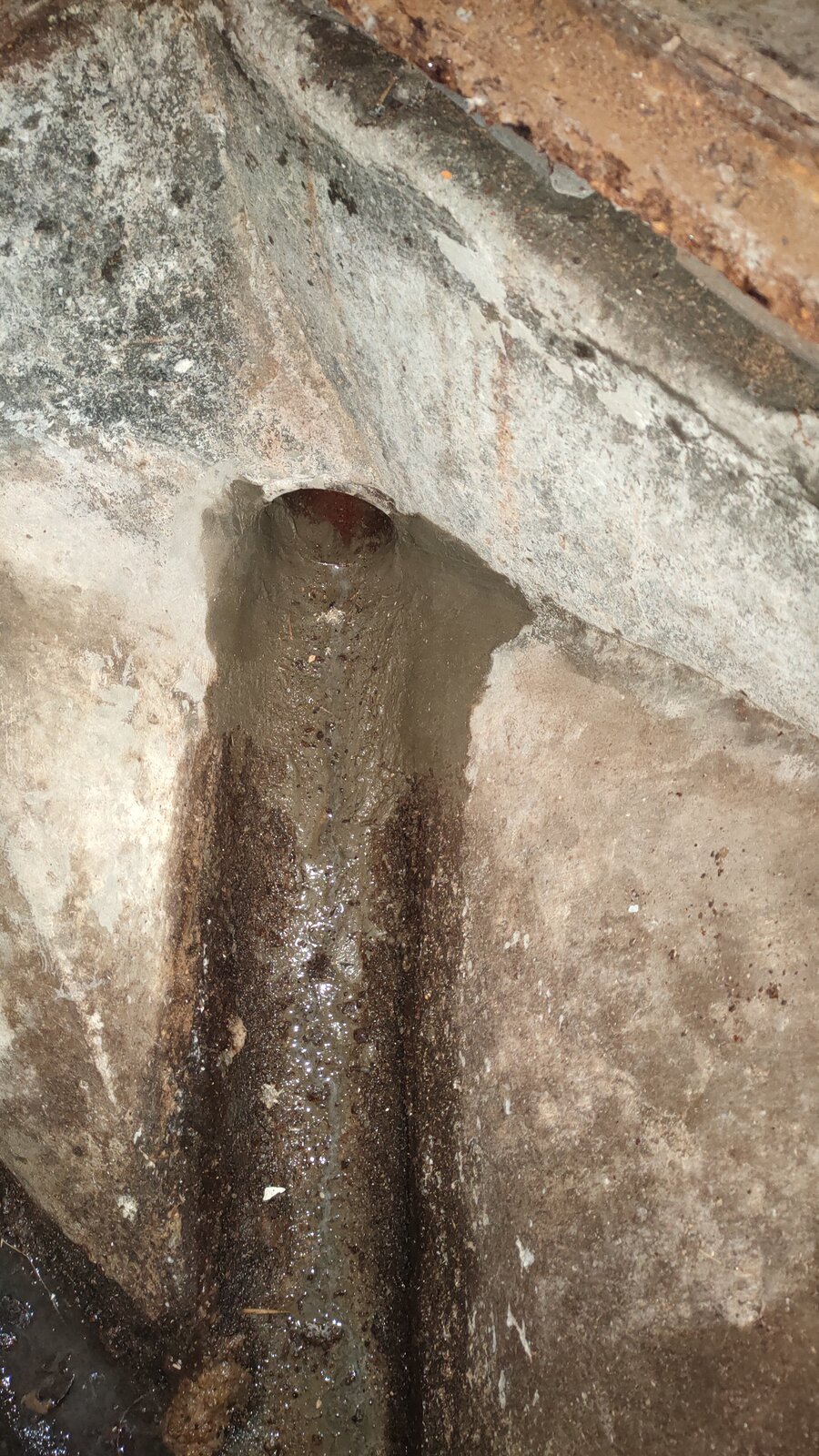 Plumber came, made a reasonable guess the leak was water getting back under a gap below the exit pipe. Tried a seal with that white sealant. £60. Said he could come back and cement it in. That would be another £60 so I did it myself. £14 for Bostik Cementone "waterproof" masses left. Unfortunately didn't work so logically the leak is probably at the other side where it is next to and behind the foundation wall! Would have been worth £60 if correct! Logical thing to try first but I can't keep shelling out £60 per hour for the bigger job ahead now I'm on a low income. So obviously now a big job so gone via Insurance. Will still cost hundreds though. £250 excess!! Trace and access. Floorboards up and the works looks like. Now that's a job that would demand a higher rate!
