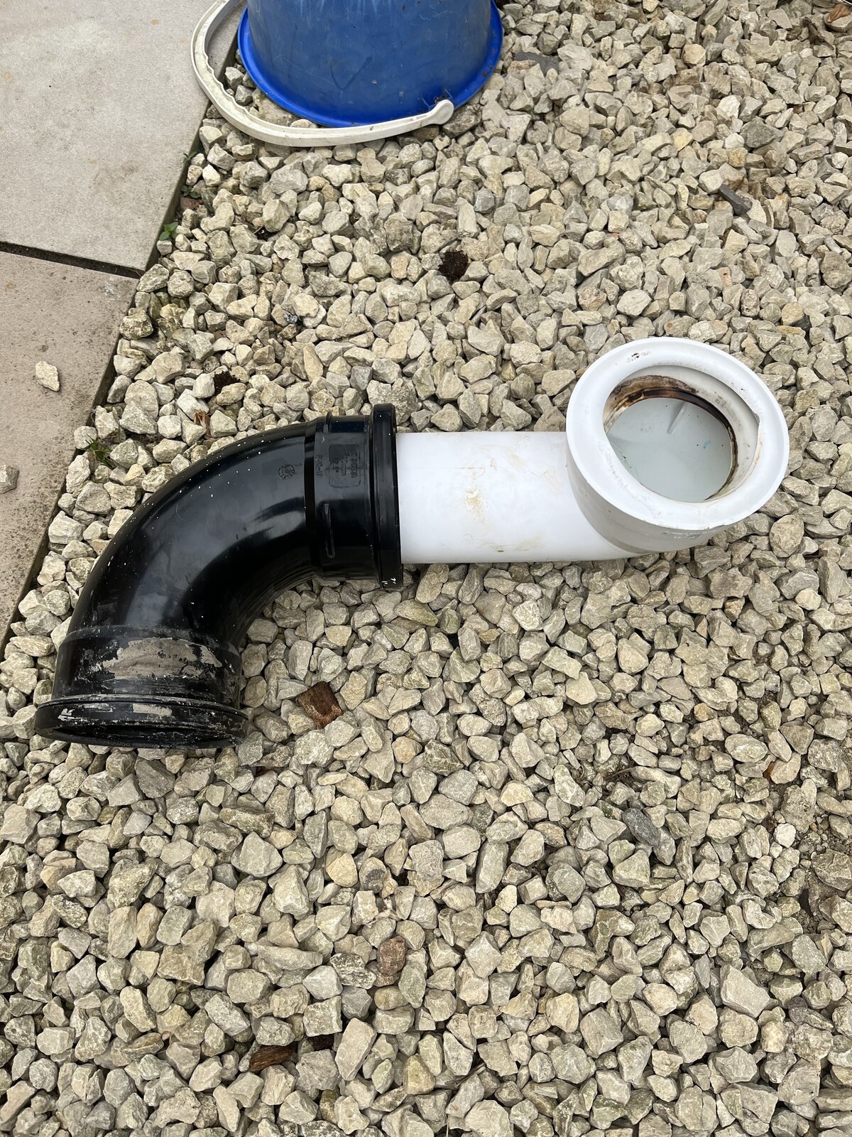 Funny smell from cloakroom toilet waste pipes, so presume a seal had deteriorated. Removed toilets and pipes, which were in 2 parts (see first image) as soil waste is offset from toilet (see third image).