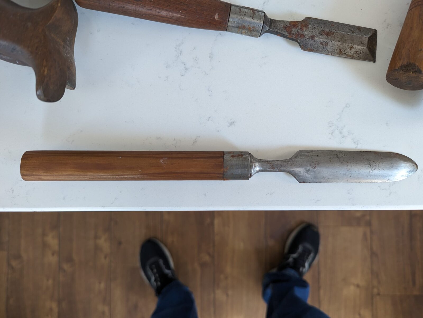 I would say it is a chisel, either woodturning or the usual woodworking chisel, possibly adapted by the owner to suit a given task.