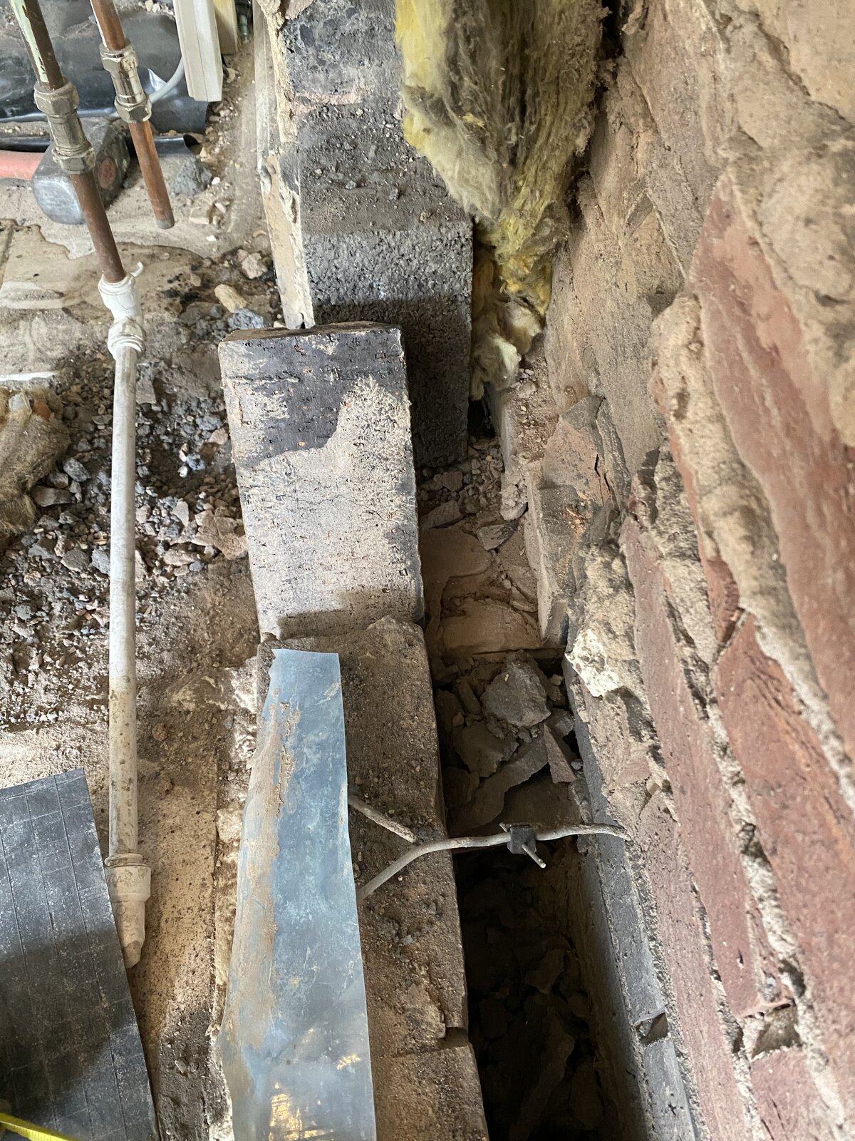 We had a kitchen extension many years ago - and now we’ve widened the opening flush to the walls, steels are in. ( sort of ) and now I need to tooth in the extension to main house. On removing the nib it became obvious the cavity on the extension is different. Measures 90mm - main house is 75. And the main house has been built a little on the **** so the blocks are actually out of line by about 40mm. Now…I could join and then batton out the wider side before plastering…but….I have to sit a padstone 575x215 where I’m toothing in. Any thoughts?