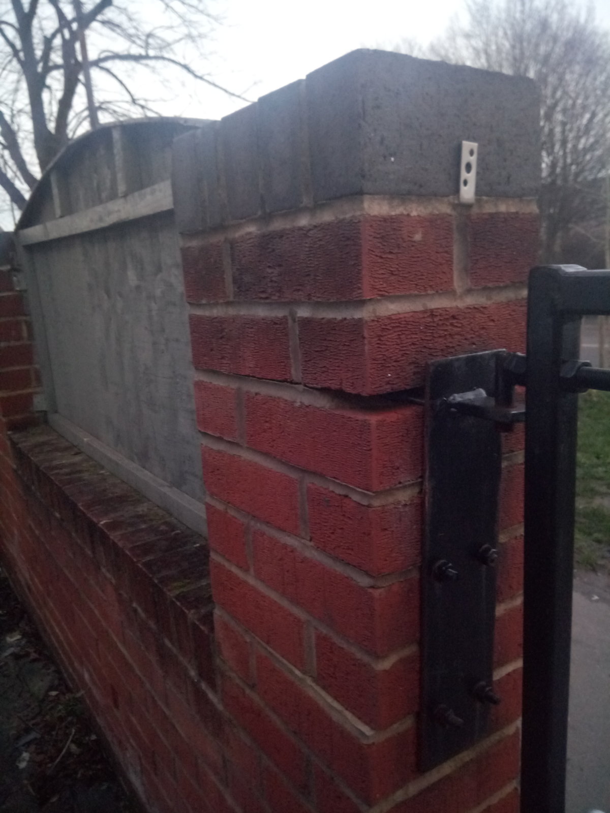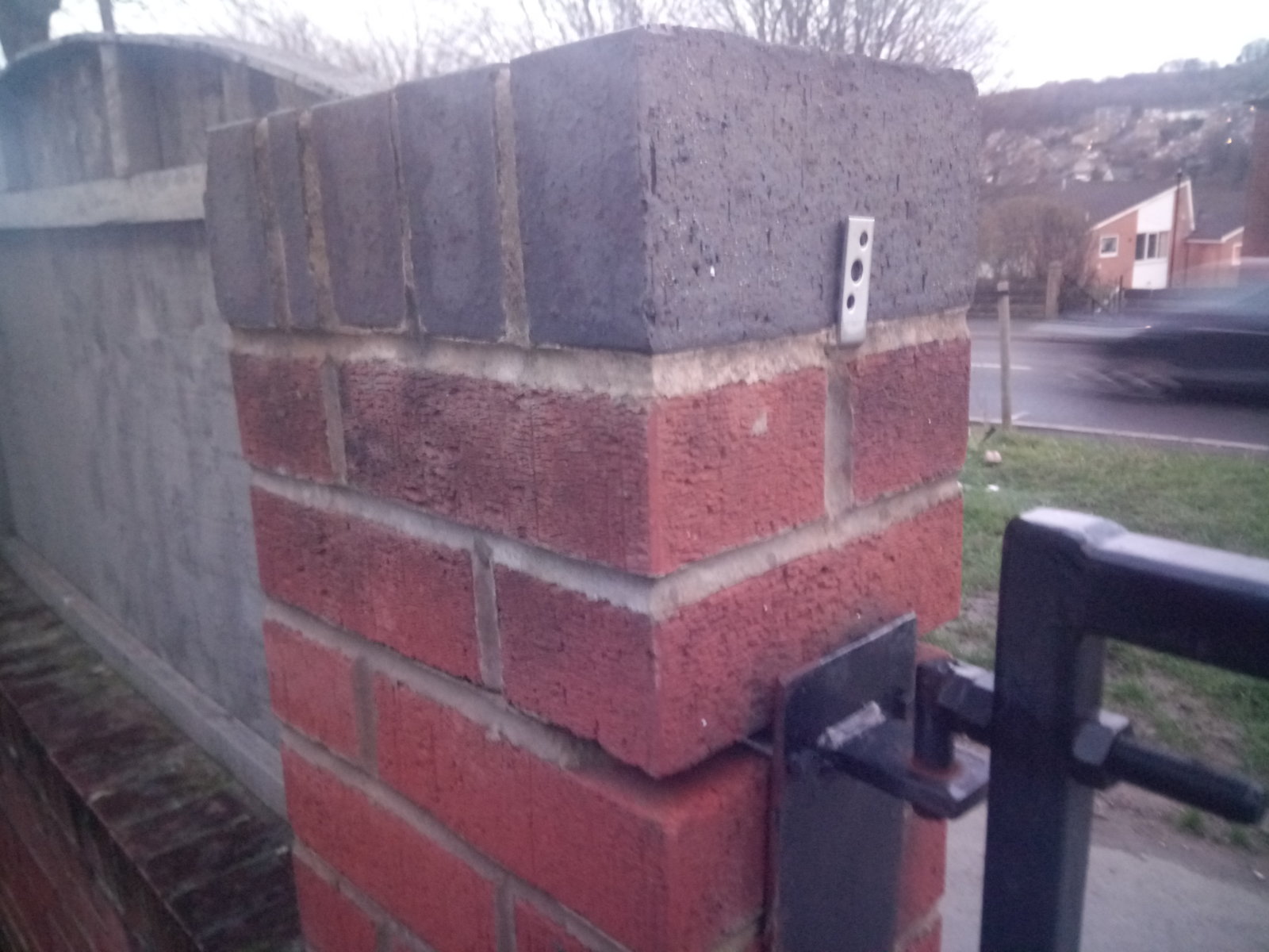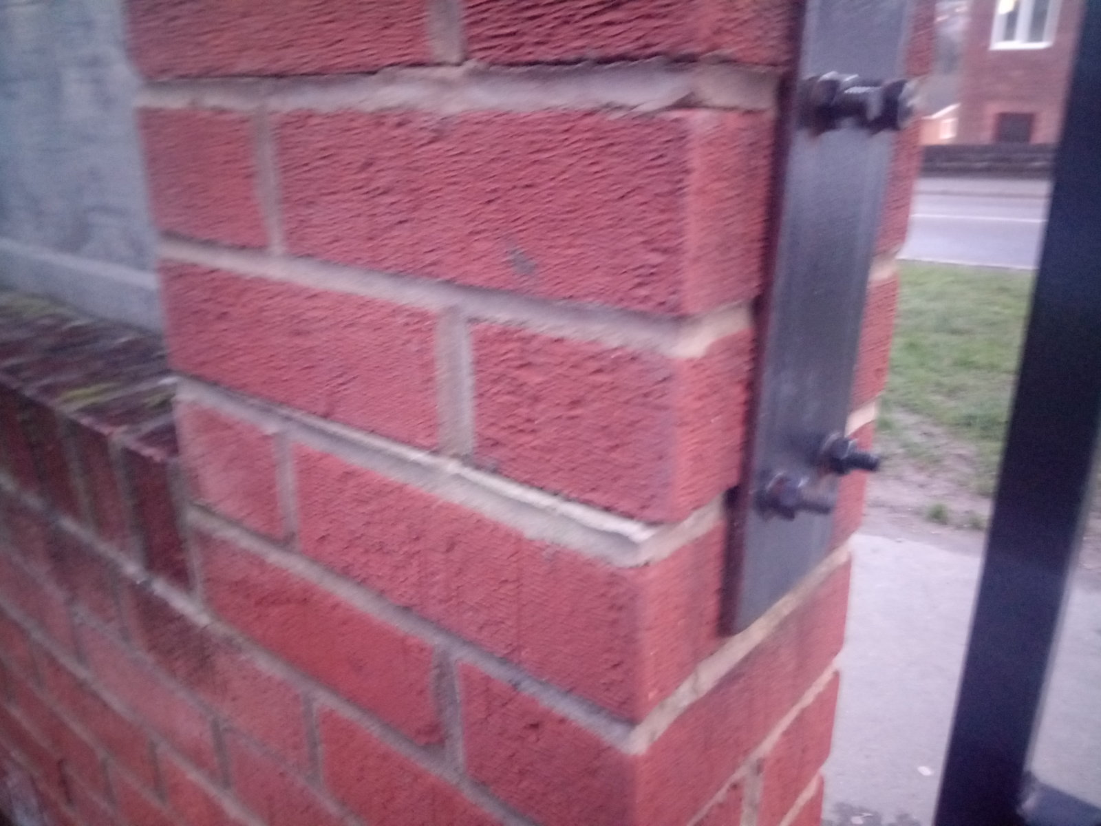 Hi, I'm after a bit of advice as to how to repair my brick pier please which is holding up of my gates. The gate is probably too heavy for the pier? It was fitted about 7 years ago (no ideas of the original mix ratio) and the third mortar bed from the top appears to be loose and you can wobble it a little either way.