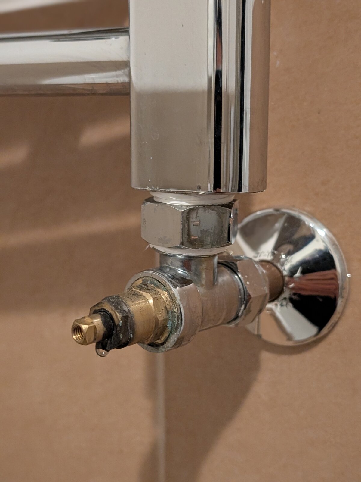 I have found that my towel rail is leaking, not from the valve but from the nut where its attached to the rail. Picture attached. If i unscrew apply PTFE and screw back will that work? Will there be a lot of water? Not keen on draining the whole house down.