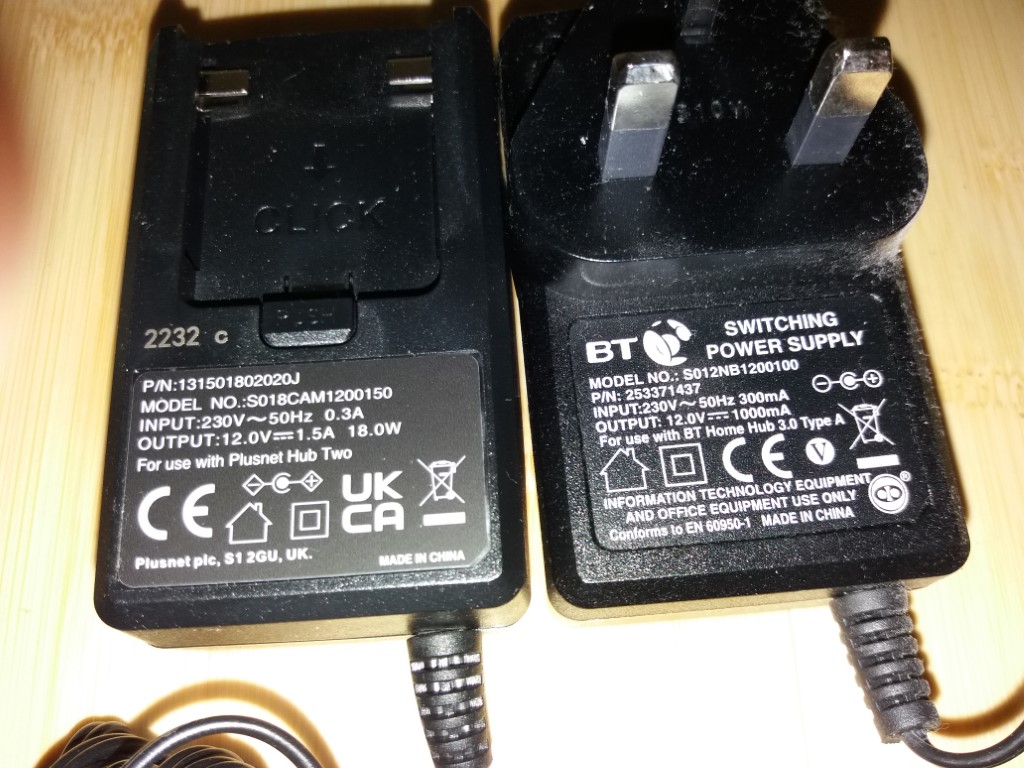 The attached photo shows the JL transformer on the right and the PlusNet on the left. Given that they both supply 12V albeit at 1A or 1.5A and the PlusNet does not have the Wattage printed (18W for JL), can I use the existing JL transformer with the new router without any issues?