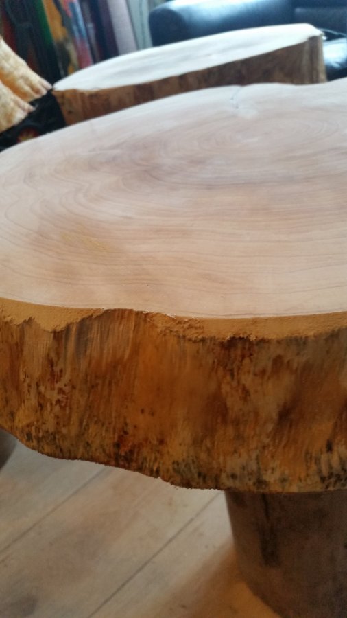 They were cut down probably about 3-4 weeks ago so have not dried out yet. The tops look ok but the sides keep getting a white "froth" (which wipes off) and green spots, looks like mould
