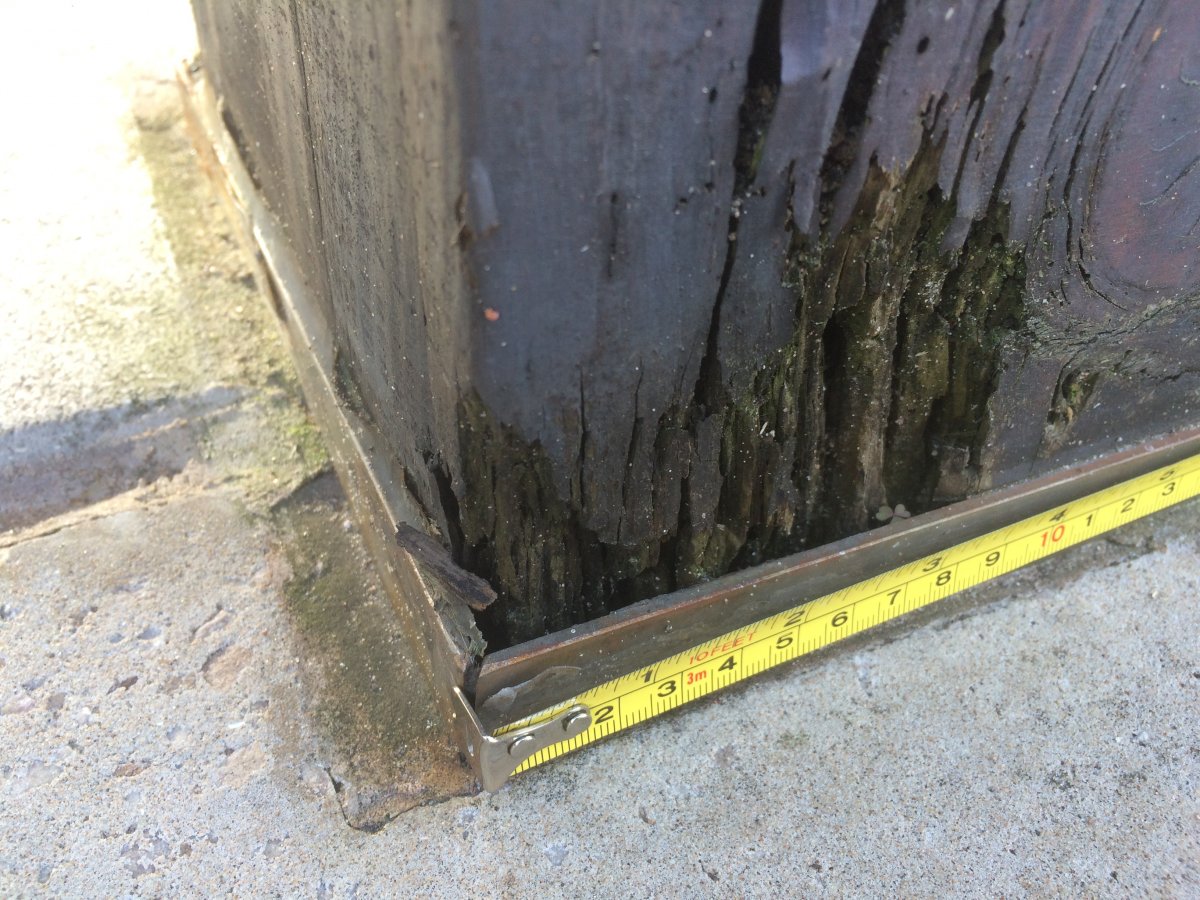 That needs to be removed as it is trapping water and keeping the base of the post damp.