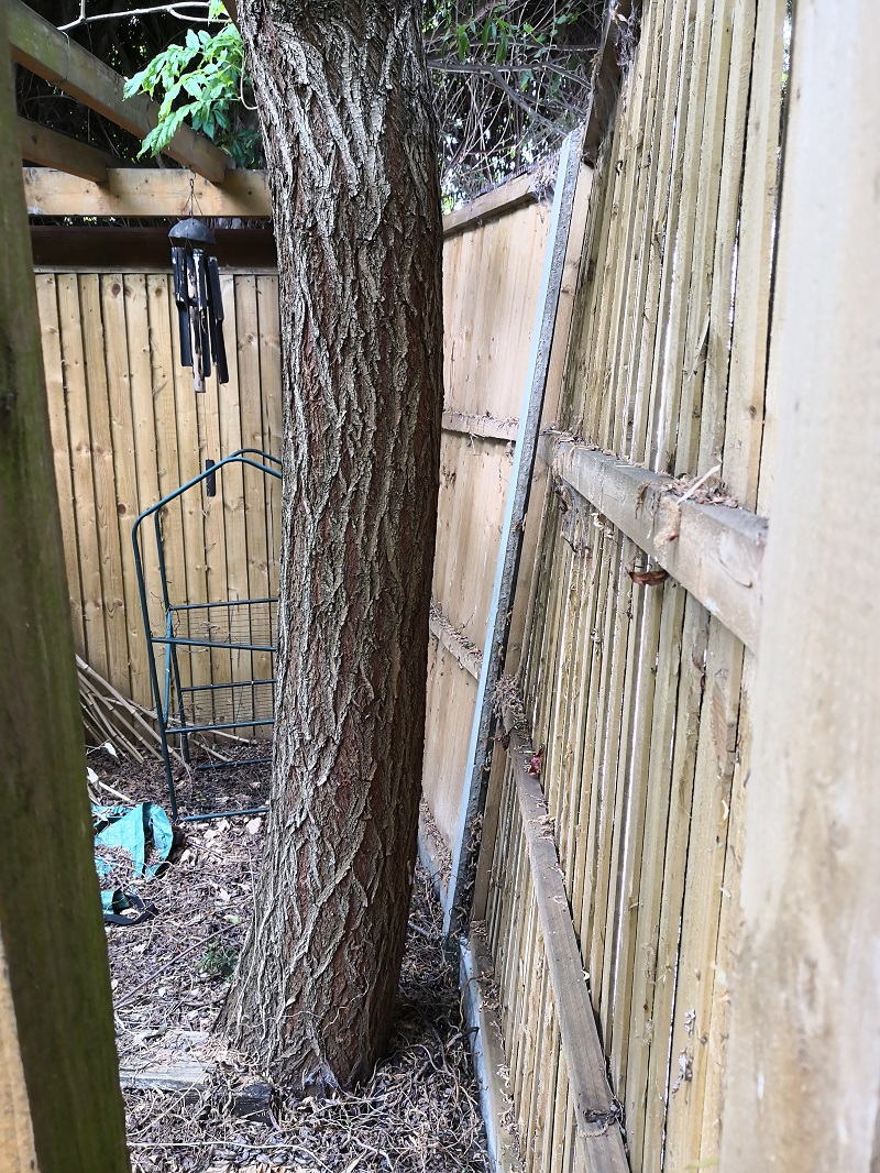 I had a fence installed about a year ago. Since then it has started to be pushed outward, presumably by the roots of an adjacent tree. The concrete gravel boards are beginning to crack too.