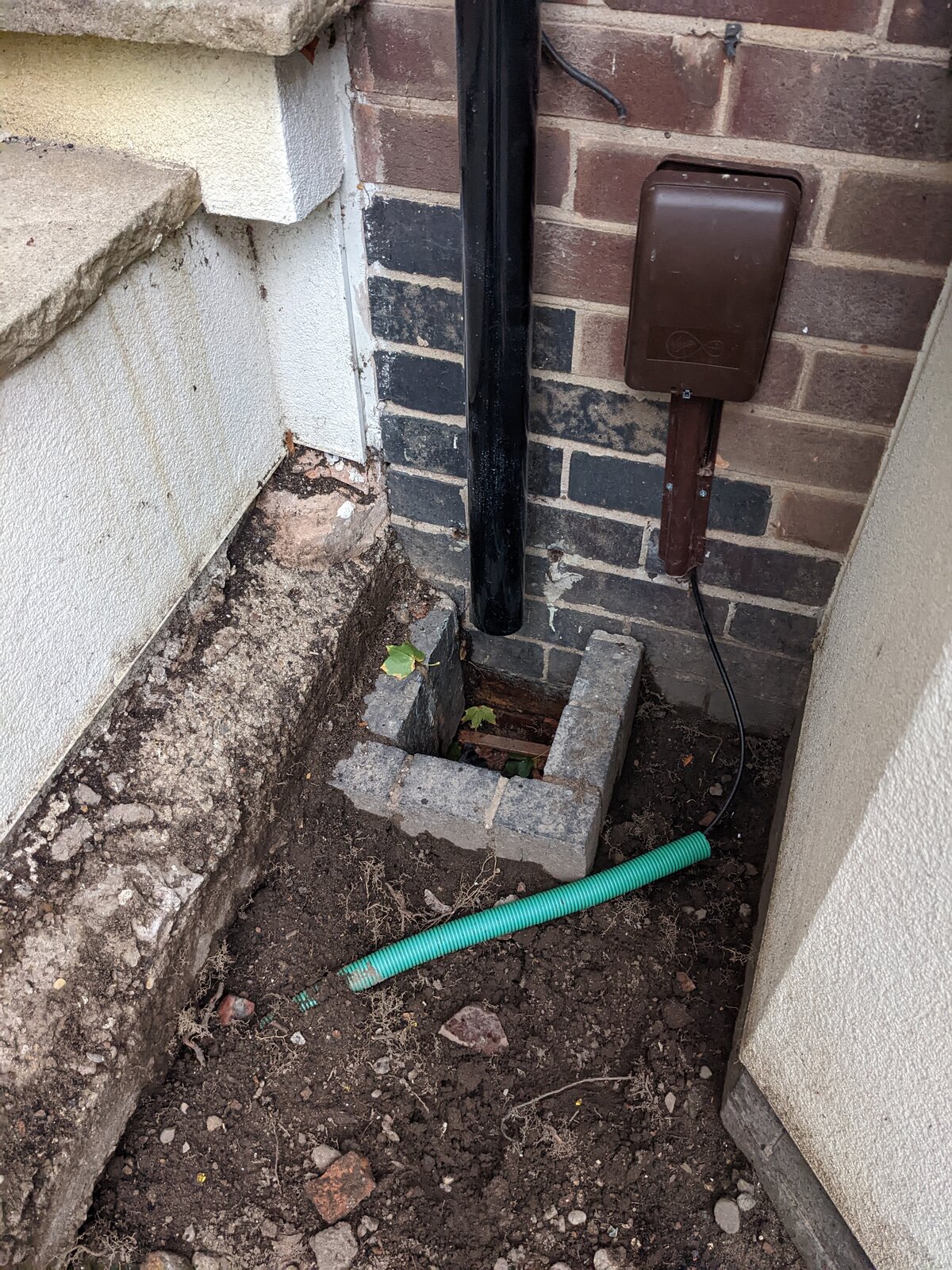 After clearing out the leaves at the bottom of the hopper, I then put my hand into the exiting part of the hopper that drains the water off. Inside I could feel some moss like debris and also a root that wouldn't move I would guess probably 5-10mm in diameter.