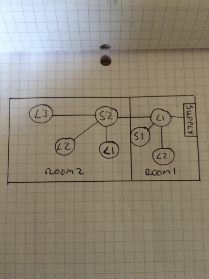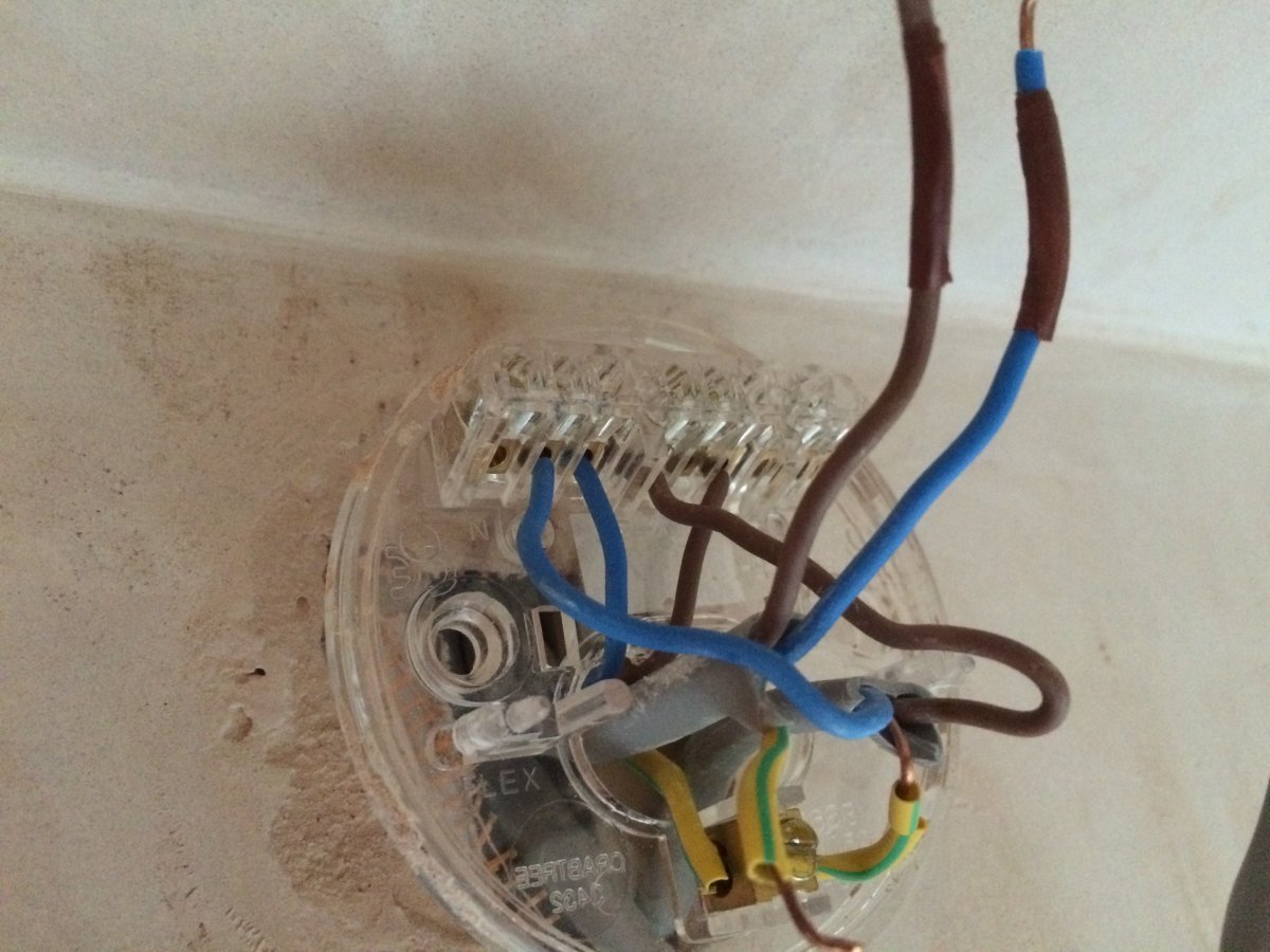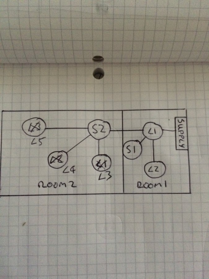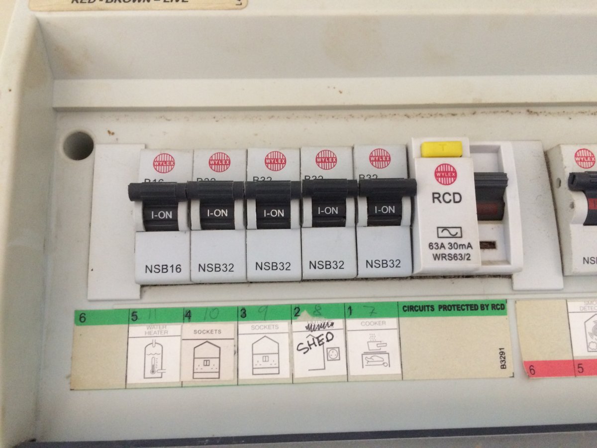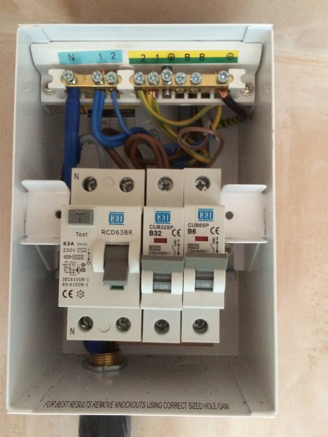 I've had a new shed/garage built. New electrics were installed by an electrician, and were we all working ok. Perhaps now a mistake, i did not get the electrician do a first and second fix, I got them to do the job in one go, knowing that I would then install plasterboarded out one of the rooms. When plasterboarding out I detached from the wall the supply fuse box and slid plasterboard behind, but no wires were disconnected in doing this. However L1 & L2 as per the diagram weren't quite in the right place so I moved them. There was enough slack in L1 to move it, however I used a junction box and extra piece of wire to move the position of L2.