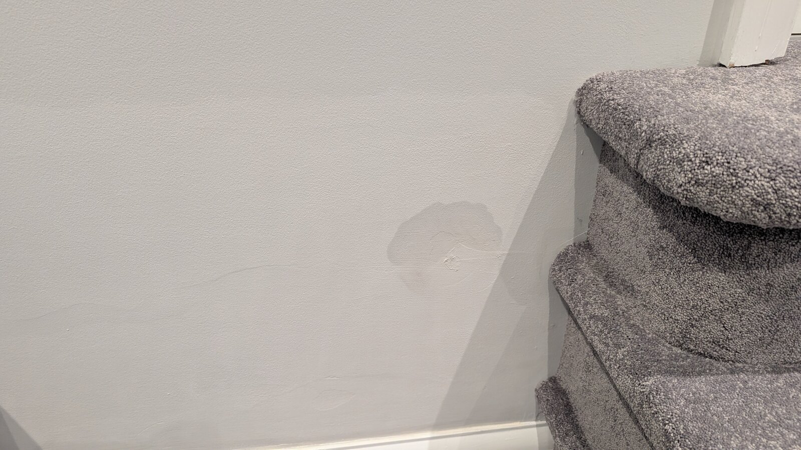 The only other possible clue is that you can just make out a slight cracked line (length about 60cm) in the plaster running horizontally through the spot - which has always been there.