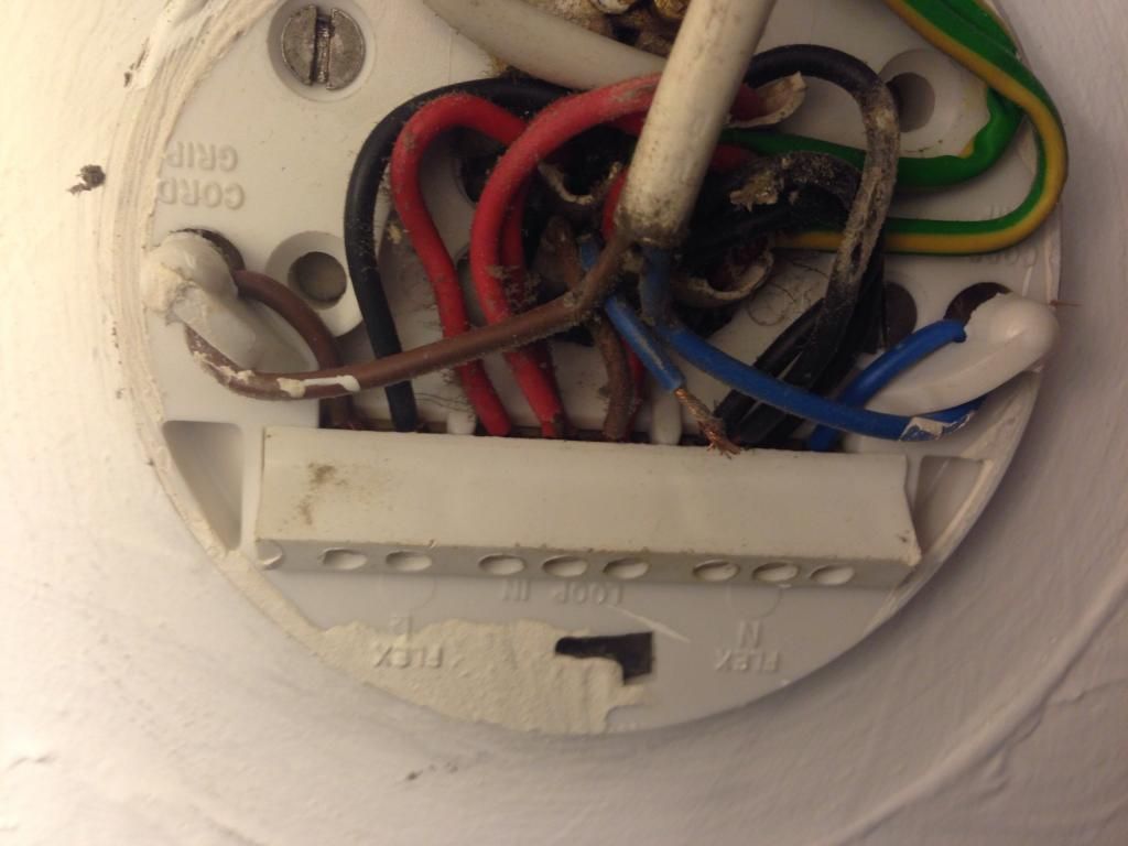 Clearing out the loft today and I caught my foot on our TV aerial booster located in the loft, powered from the landing light, anyway seems one of the cables has come out (see pic) blue and brown seem to be coming from the TV booster, can anyone make out where the blue should be from the pic??