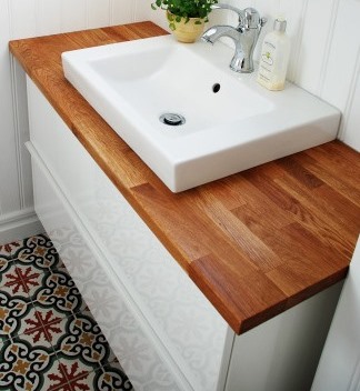 Trying to recreate the look of the bathroom vanity unit and wondering what type of wood was used for the surface. Trawling the internet and the nearest I can find is Iroko. Does anybody what it may be?