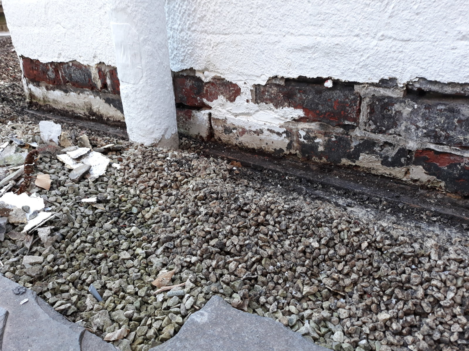 3 I've raked back pea gravel which was all around the footing to check no big damp issues. I now see this is flagged rather than soil so could this potentially cause more moisture retention at the lower/sub level? Can't see how this supports any drainage or anything if no soil beneath