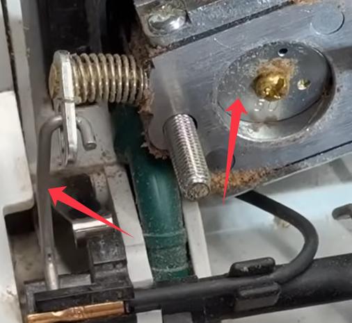 Ive checked that the black wire with brass fitting on the end isnt touching that metal part so when lever is moved up it makes a connection & kills the engine.