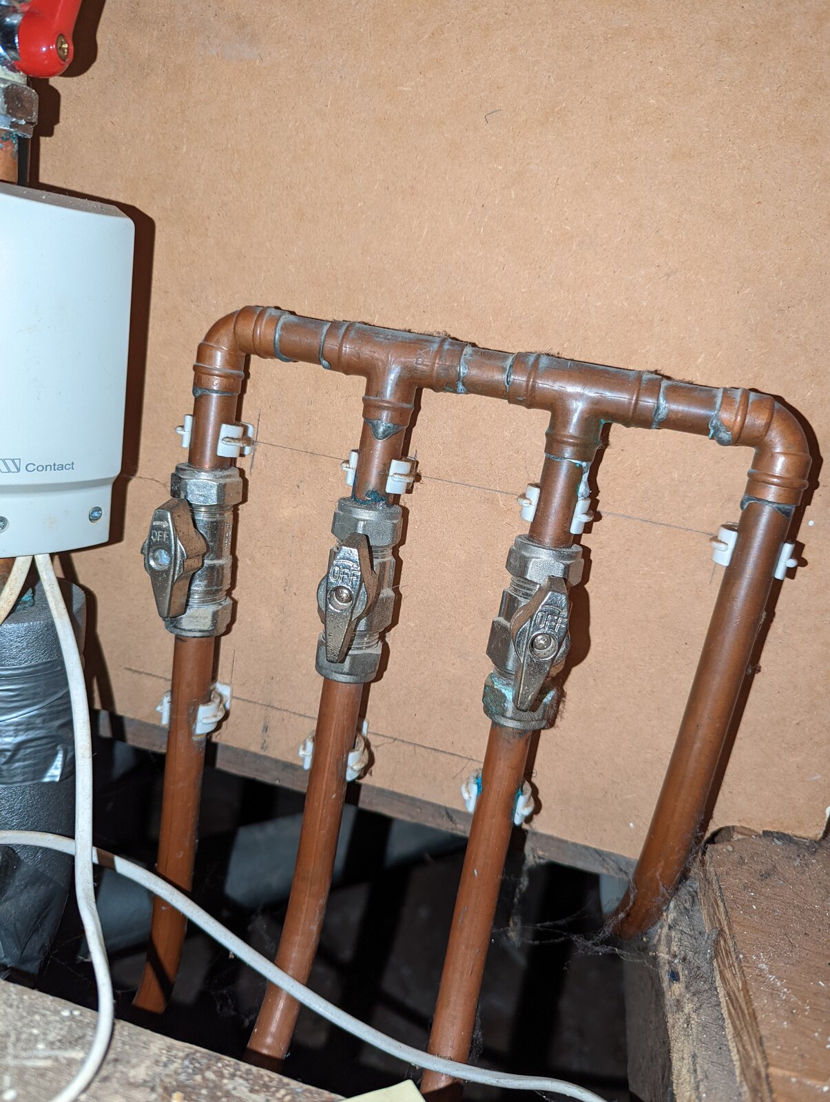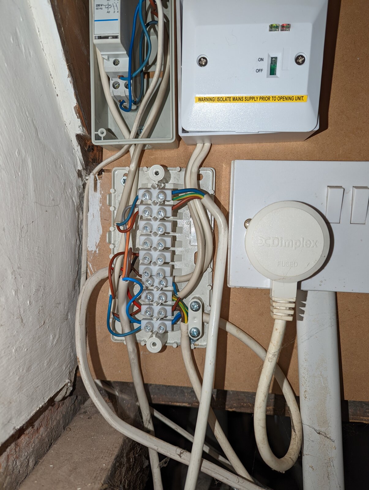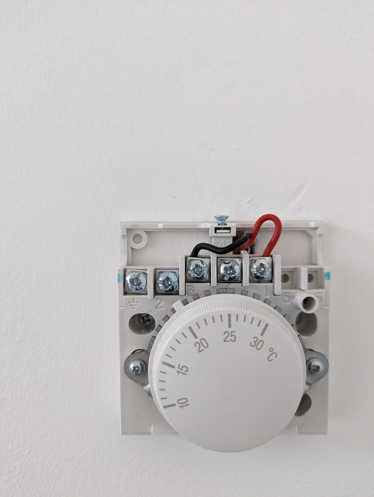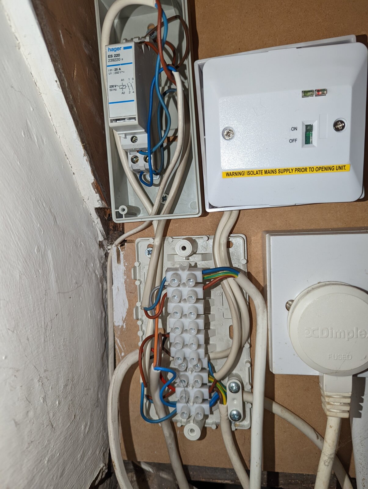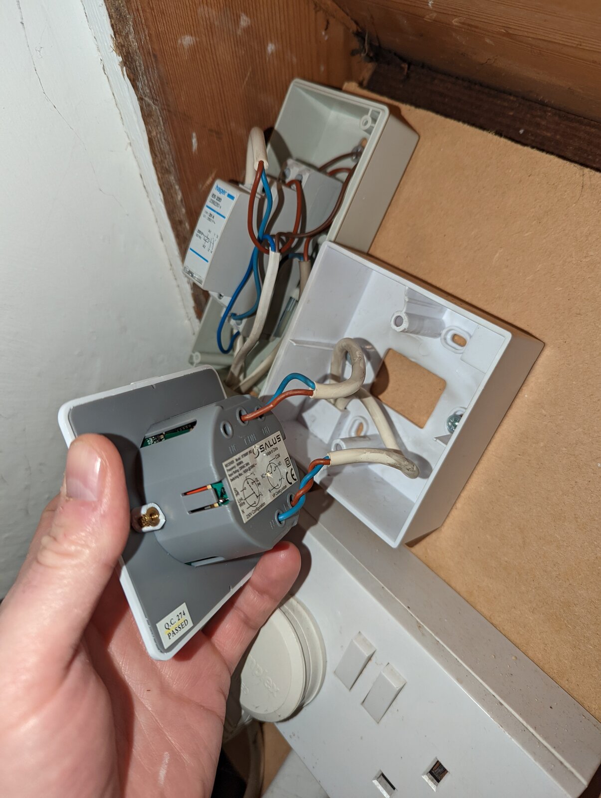When we moved in there were 3 thermostats. One is the main house radiators. The second is the rt500rf and the 3rd was the remnants of a stat backplate in the kitchen itself. With just a T&E live and neutral terminated but no control mechanism.