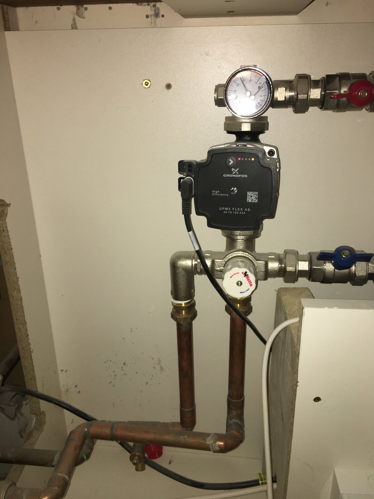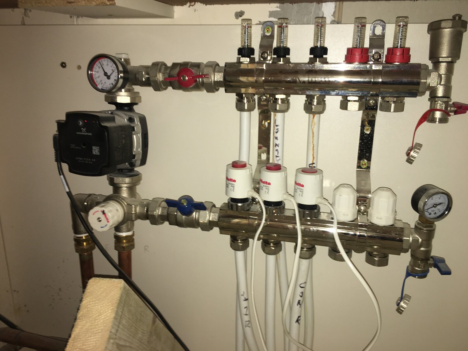 I had a guy do some work on my house including installing wet underfloor heating before the screed in my extension went down. I have a hetta system with two zones. I zone for the conservatory and 1 zone (with 2 pipe runs) for the lounge. The guy who did it did some other work for me and he turned out to be a bit of an idiot. Basically didn’t actually get anything right so I wasn’t surprised when the underfloor heating didn’t work. I am trying to debug it as was getting no flow at all initially. Firstly he had installed the flow and return to the pump the wrong way around. Changed that to the correct way and now I do get some flow under certain conditions. He must have mixed up the pipes as when I put on zone 1 the first two actuators open And I get flow on the first and 3rd flow meters. But I only get flow if I either turn the blending valve up high so that the temp on the value is higher than the actual water coming in or I turn the target temperature of the boiler right down. As soon as the temp of the water coming out from the boiler exceeds the 45 on the blending value dial it shuts down the flow and basically just sits there. It doesn’t seem to ever cool down enough to start up again. It would be great if anybody has any ideas or could see if the layout looks right. Thanks very much in advance