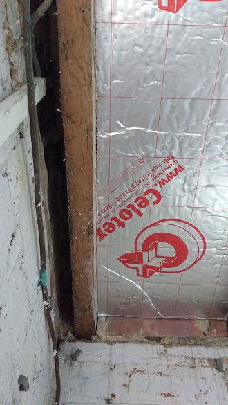 My bathroom is above an unheated storage area accessed from outside, presumably originally a coal shed. The bathroom has been rather cold and drafty during the winter, so I've pulled down the plasterboard ceiling in the shed and fitted 100mm Celotex between the floor joists.