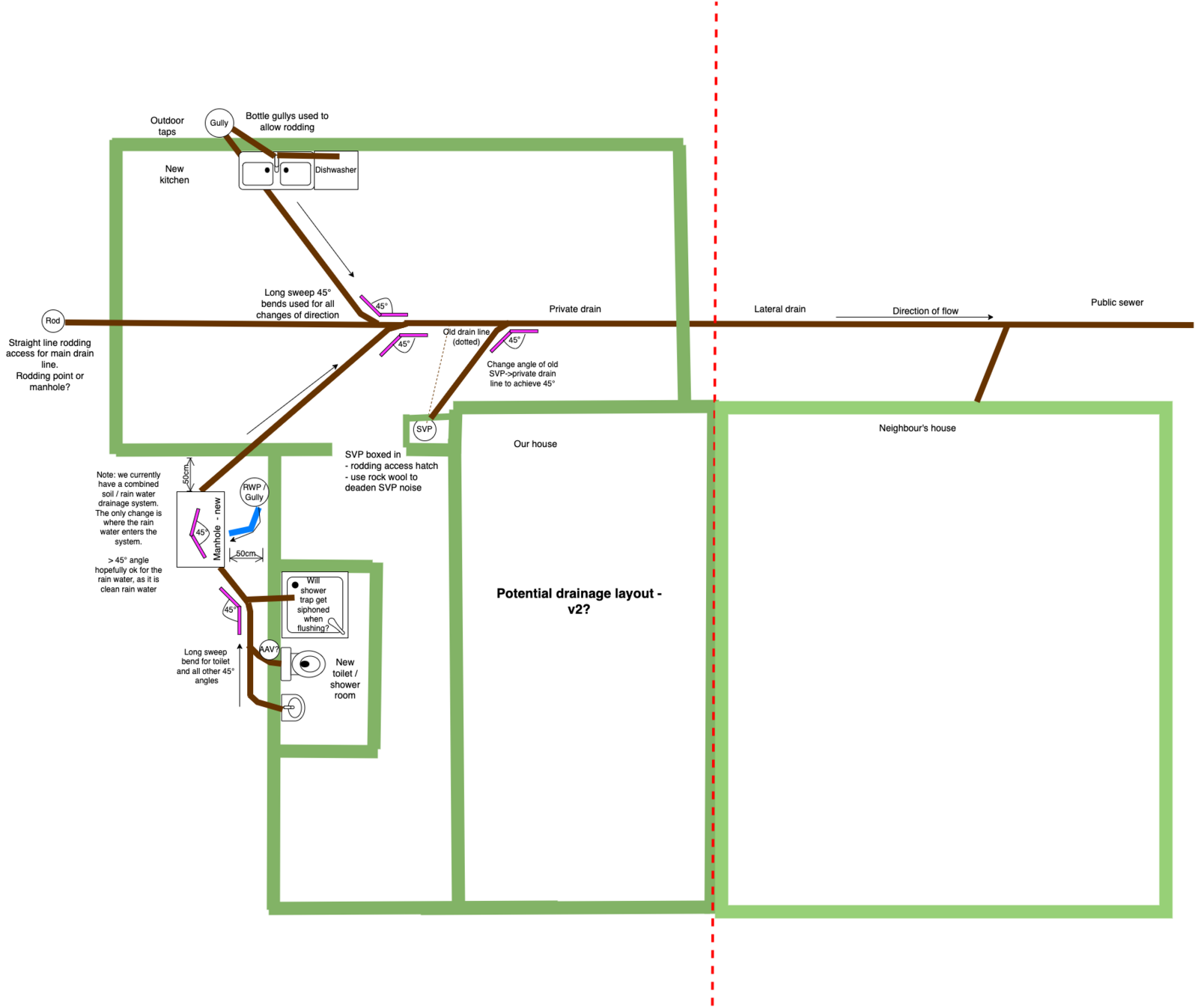 - I'm trying to ensure there are lots of rodding points for the whole system as the manhole which is in the extension footprint would be removed.