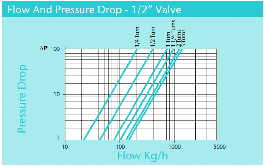 I'm hoping someone can help me get my head around understanding radiator valve pressure drop. As an example, from the attached chart, a lower pressure drop results in a lower achievable flow rate.