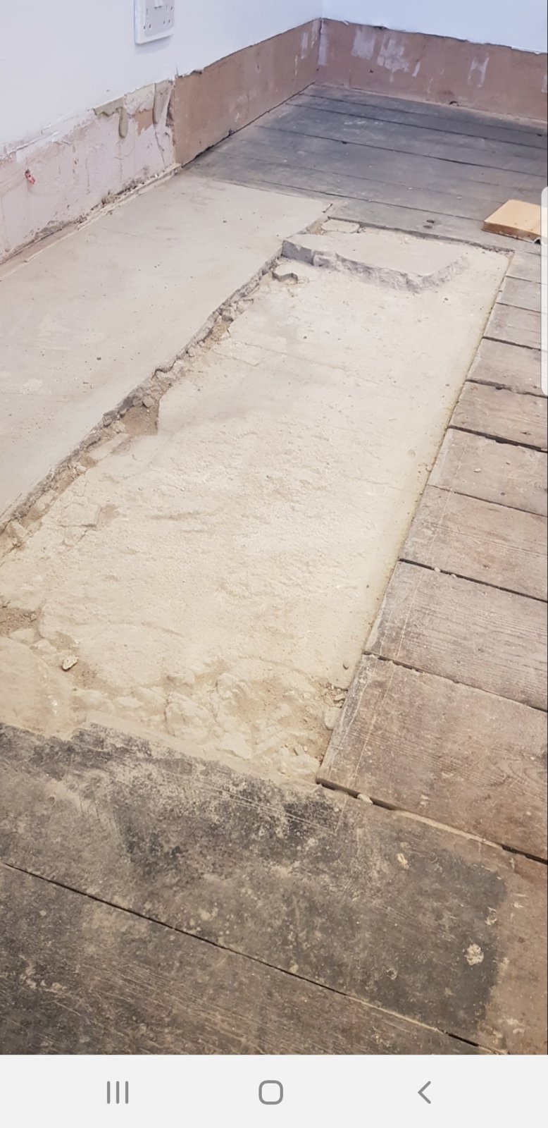 Hi all long time lurker. Currently in the middle of laying down laminate in house that we've recently purchased. Old chimney breast has been taken out from front room which is on a wooden subfloor.