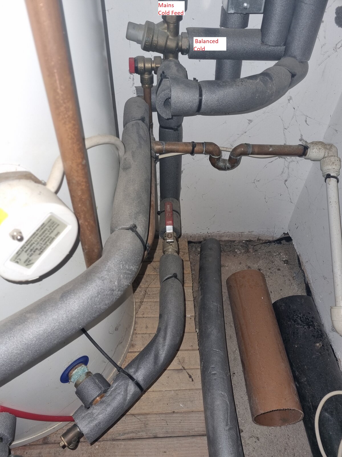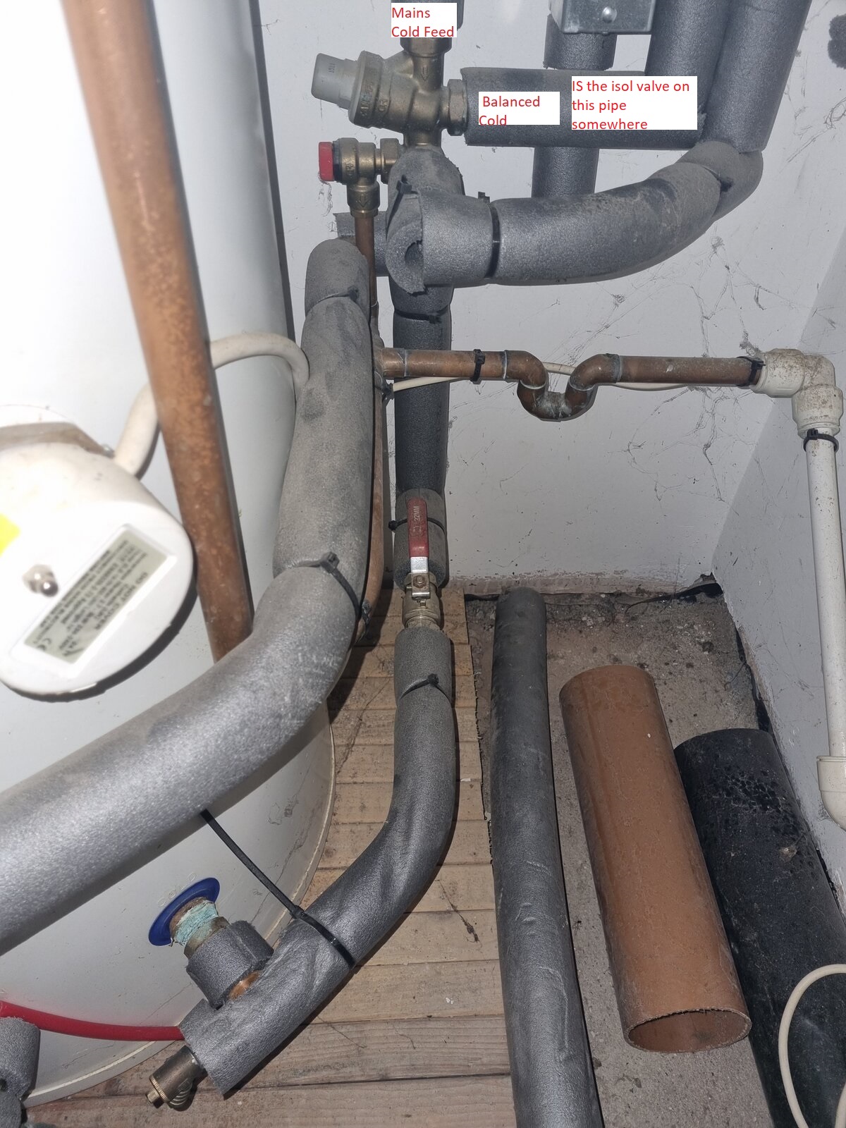 Some more pics, yes the isolating valve is on the balanced cold pipe with red handle.