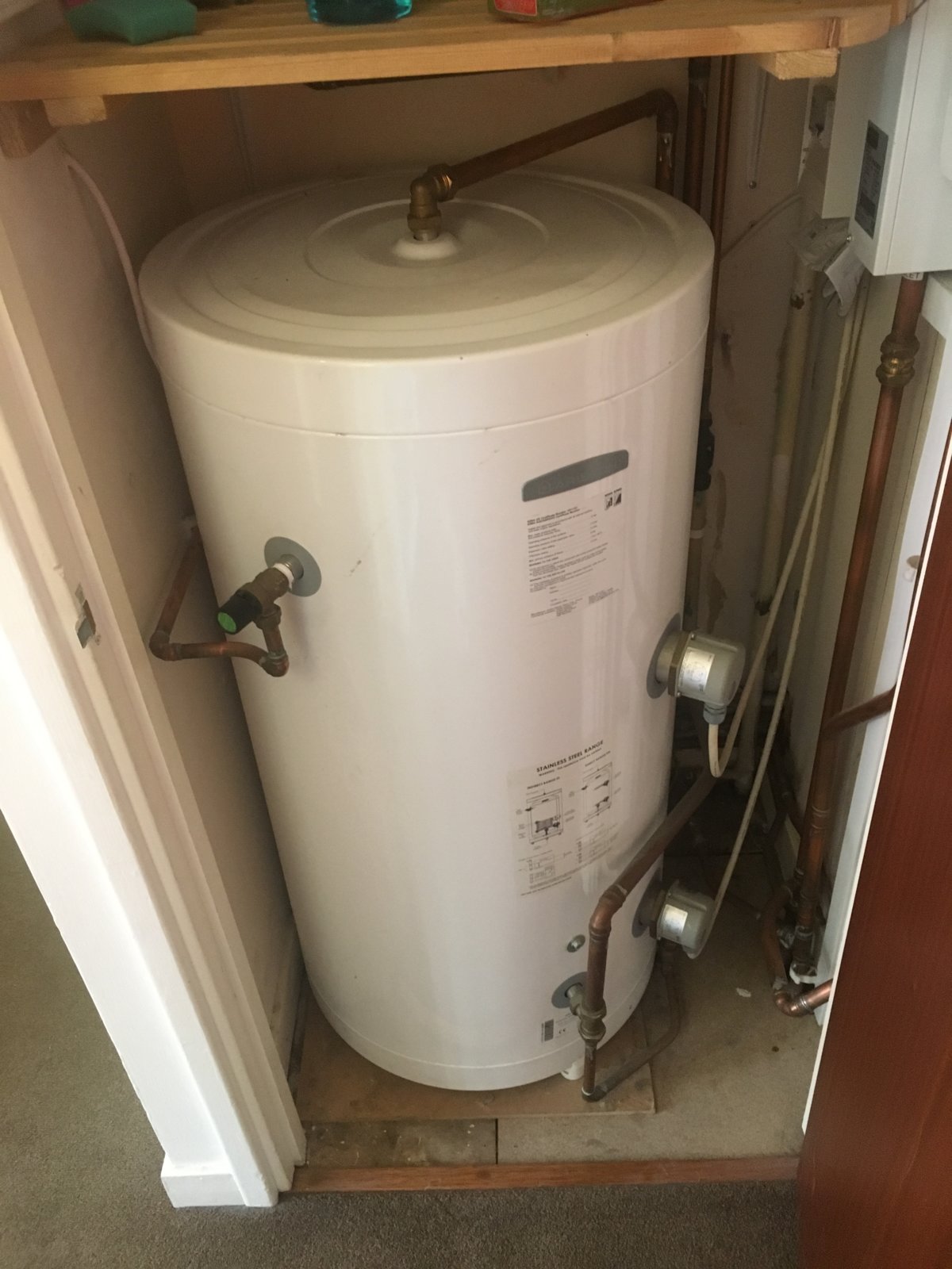 money up the wall on investigations/time looking at this. It’s a pest the three connections on to the cylinder need undone. Need to spin cylinder round a bit to remove stats/elements. Stupid design- safety valve(?) top left, stopped cylinder fitting into space with the immersions free to come out.