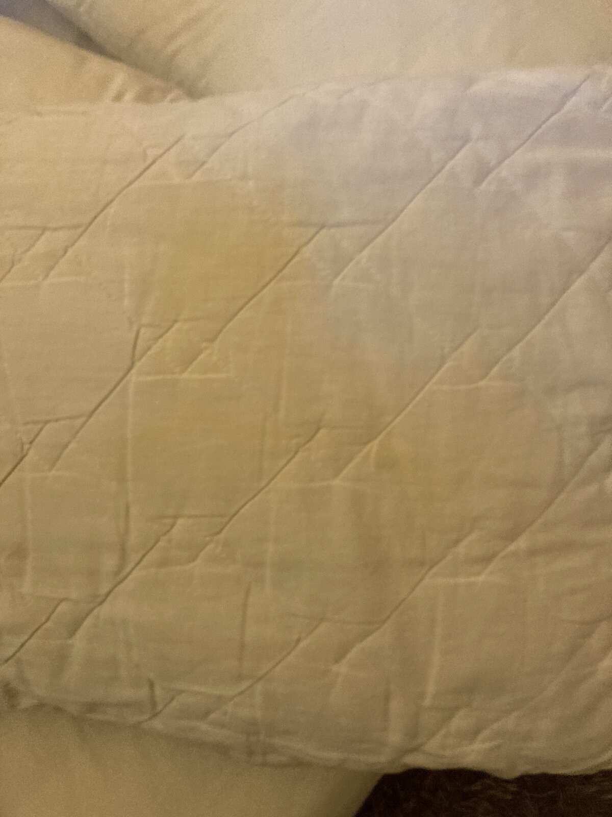 The rest of the bed and the whole cottage was rotten. The owner who lived next door went and got us some 'fresh' pillows from his house. Fresh in the context that the streaks of earwax on them was sill soft!