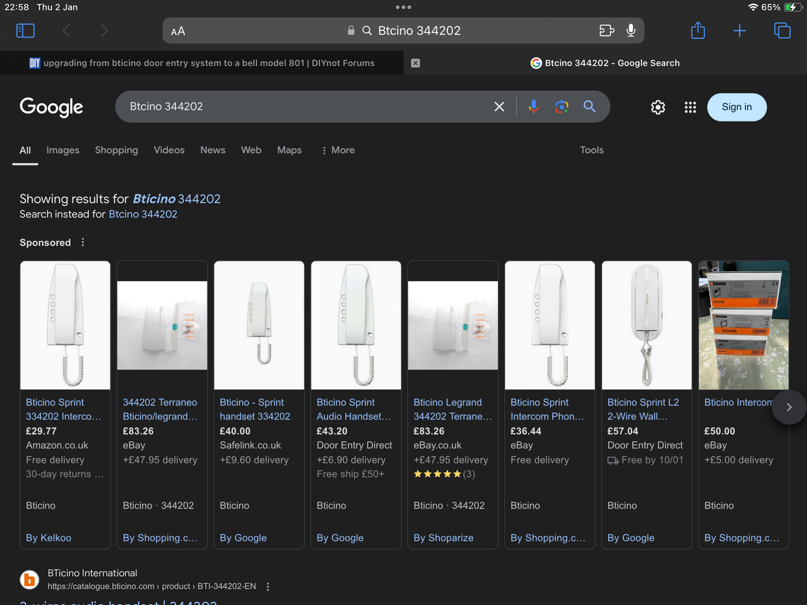 we thought the handset may have been broken so we purchased a new handset, couldn't find the old brand handset so we purchased a different brand, the old one was a bticino and the new one was a bell model 801.