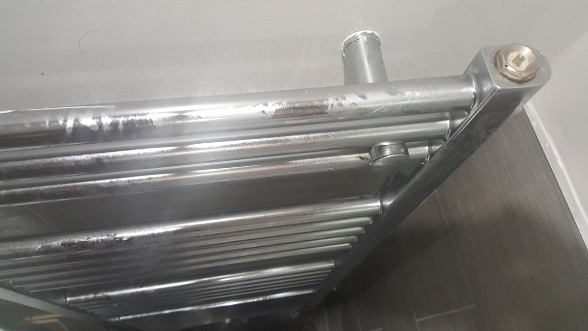 Recently had my bathroom upstairs done up. But radiator no longer seems to be heating up. See pics attached.