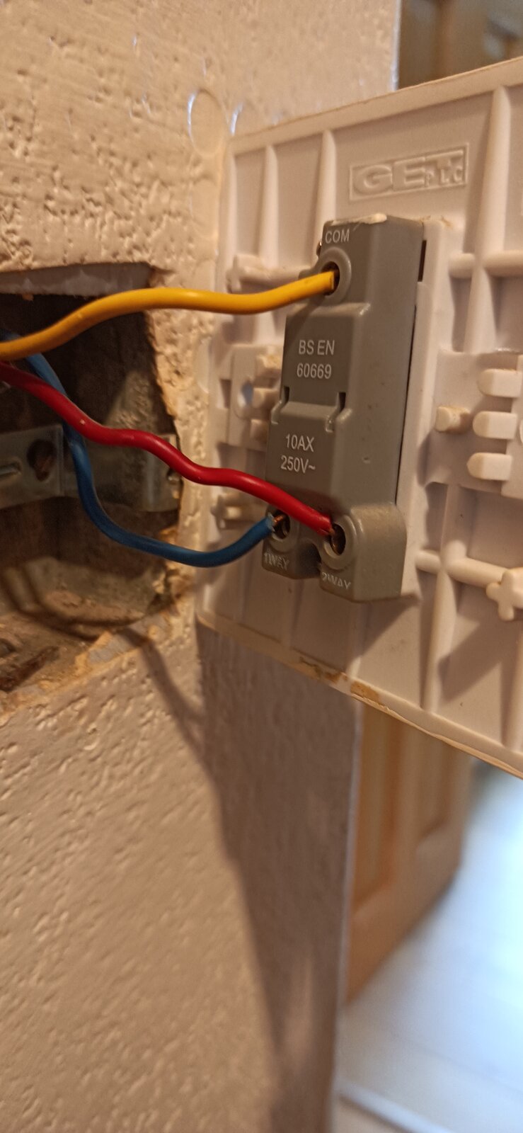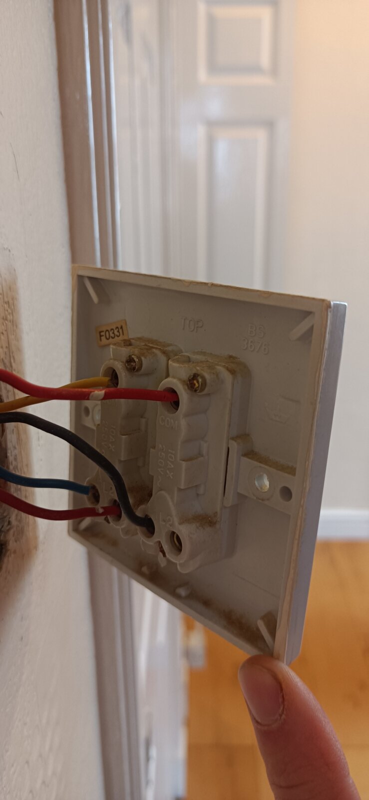 Please see the photos of the switches, double is down stairs working stairs and hall light, upstairs single allowing to switch on and off, but no allowing it the now.